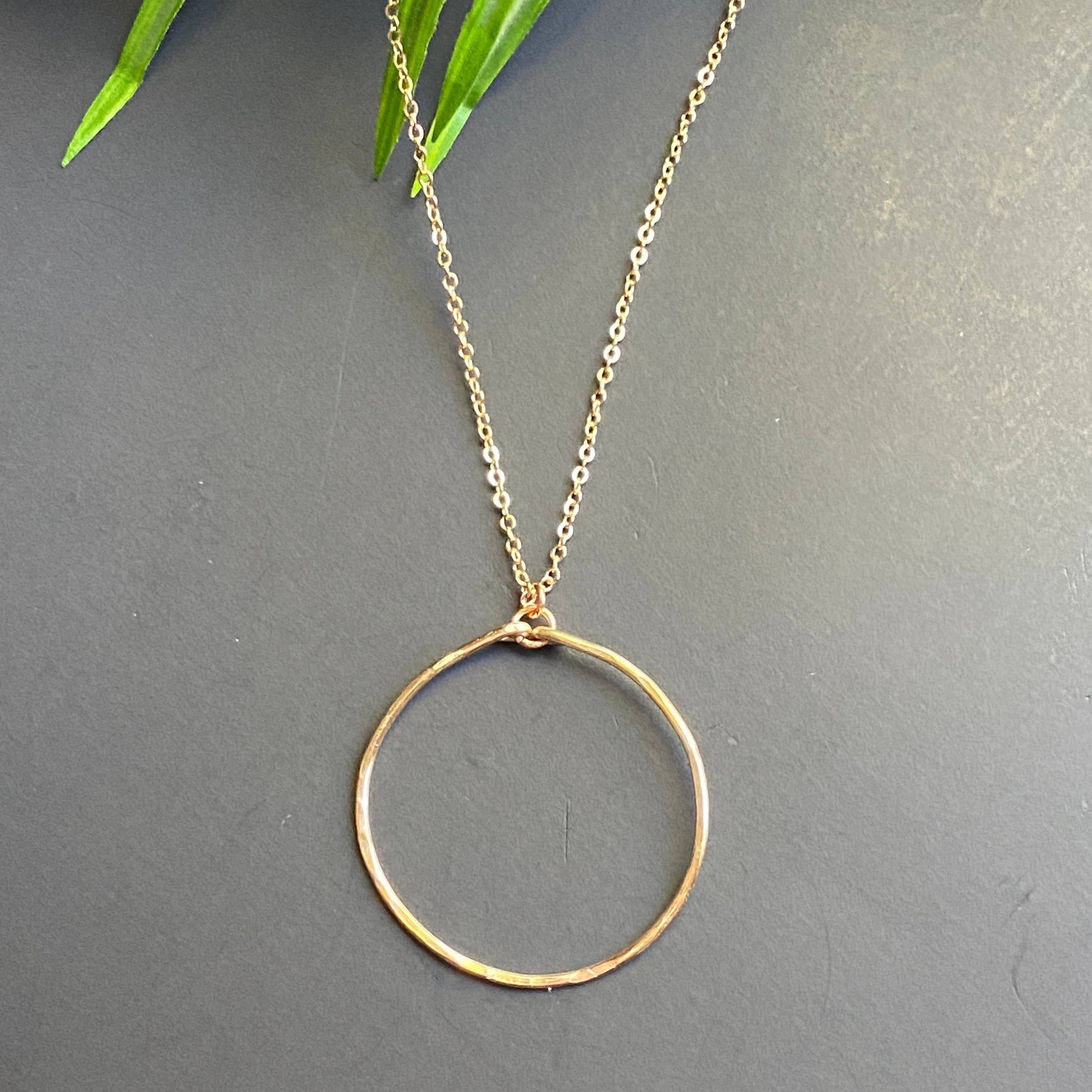 Marble Designs Jewelry - Hammered Gold Hoop Necklace Pendant Simple Classic: Gold