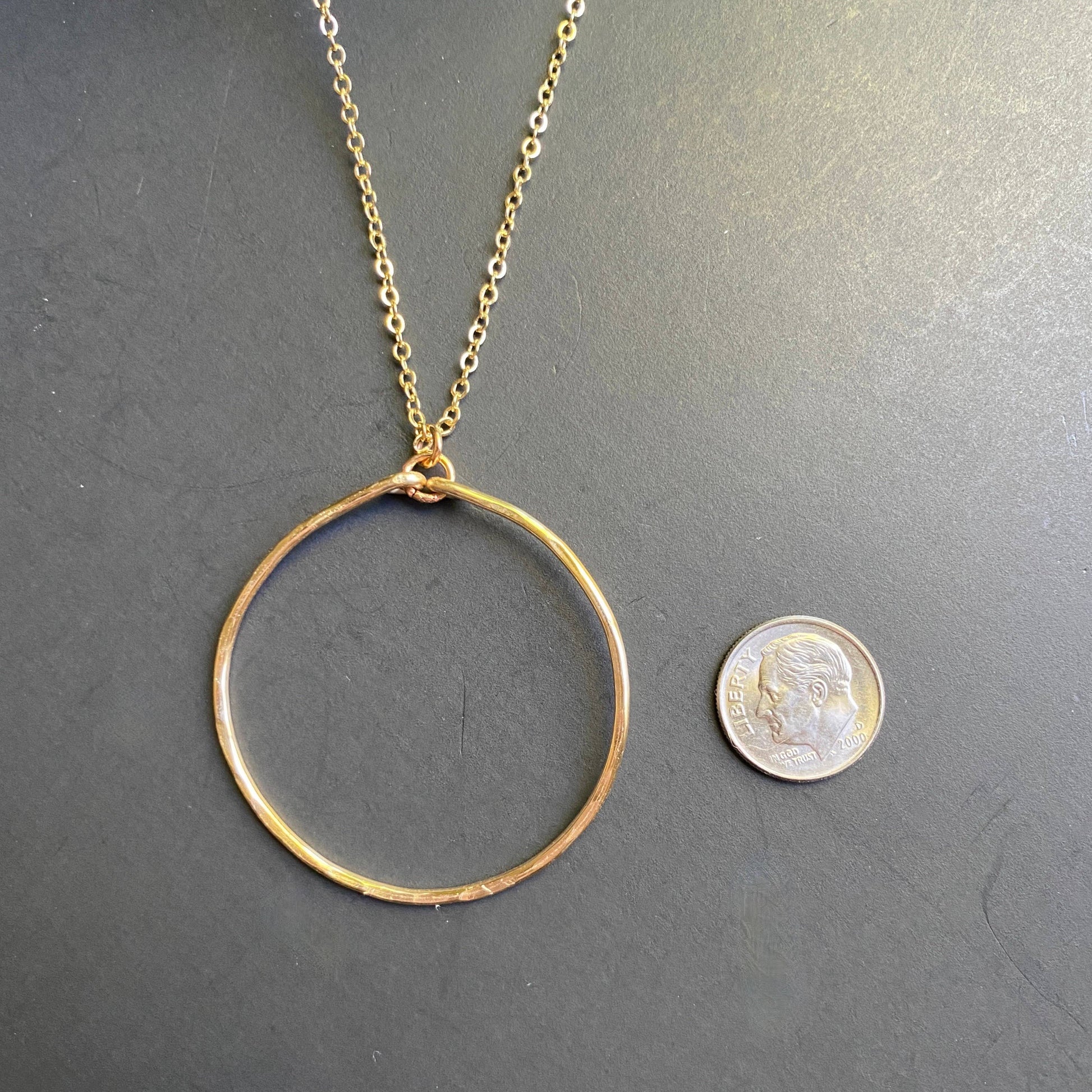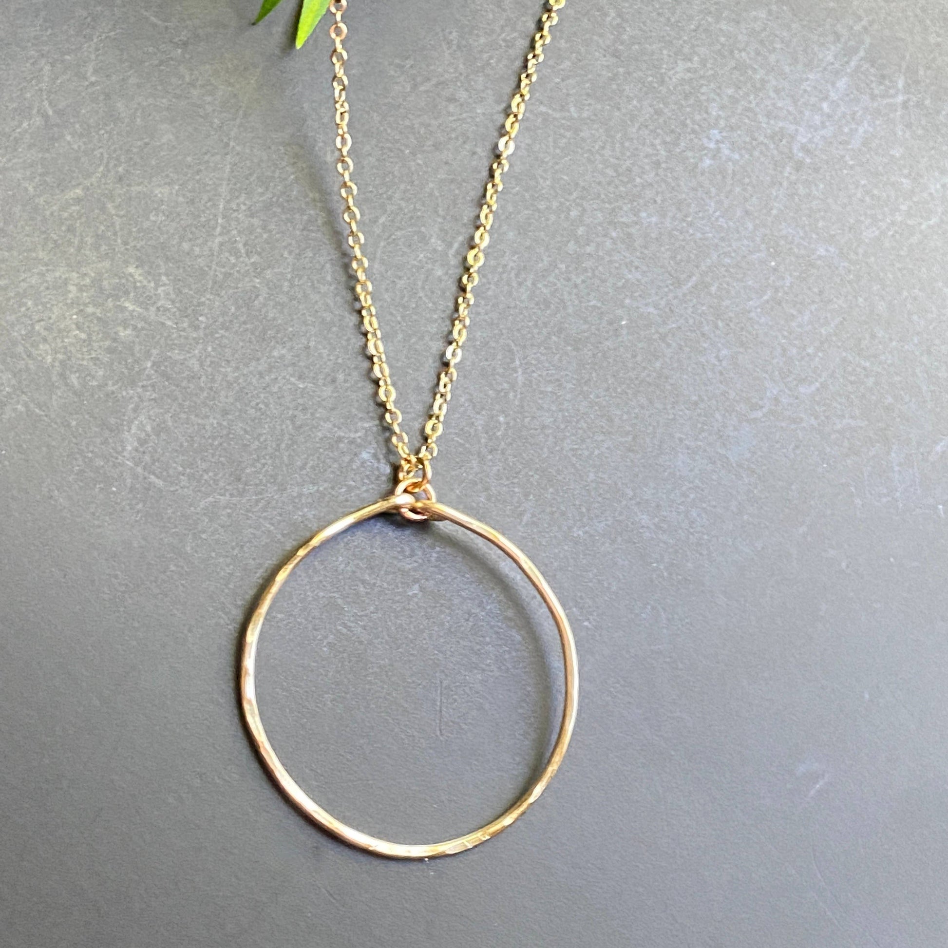 Marble Designs Jewelry - Hammered Gold Hoop Necklace Pendant Simple Classic: Silver