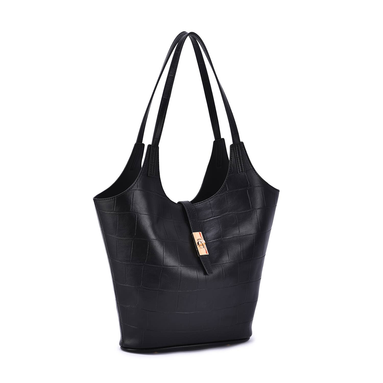 2-in-1 croc embossed tote with zippered wristlet pouch.