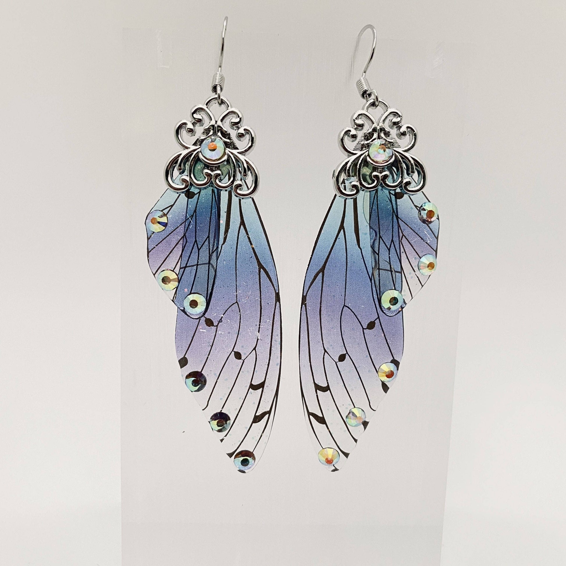 Mio Queena - Handmade Fairy Wings Earrings Insect Butterfly Wing: Blue bronze