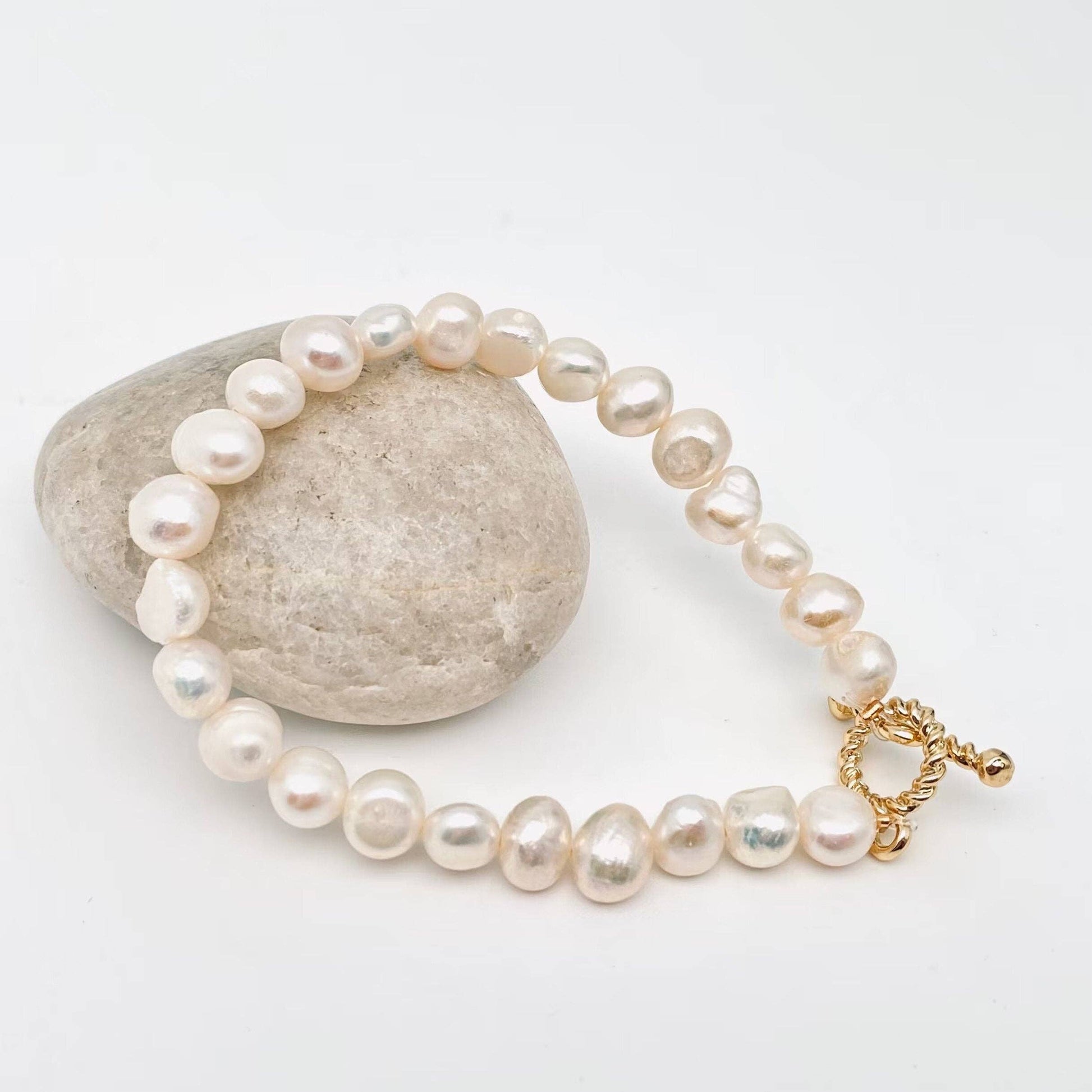 Mio Queena - Irregular Pearl Beaded OT Buckle Bracelet: Pearl