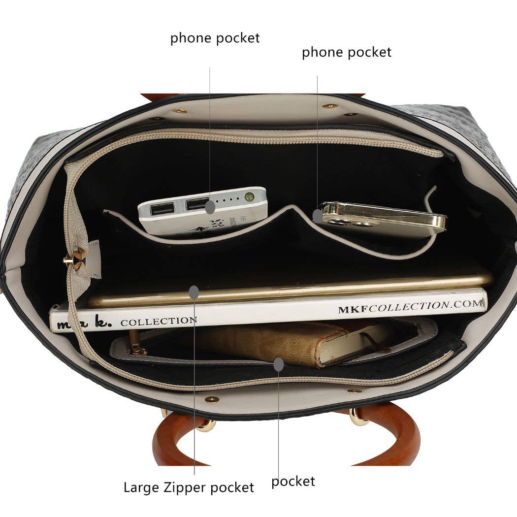 MKF Collection - Phoebe Faux Crocodile-Embossed Tote with Wristlet Wallet Bag: Black