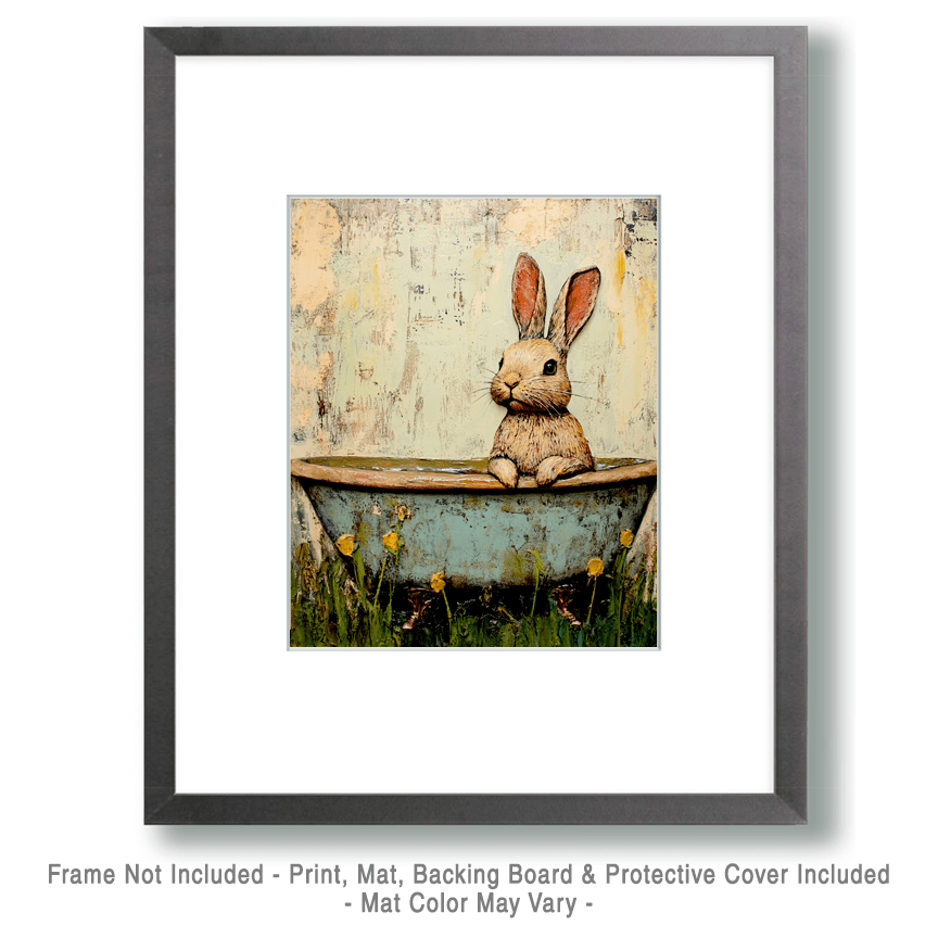 Mowbi - Bunny Rabbit in Bathtub - Bathroom Wall Art Prints – 8″x10″ Artwork for 11″x14″ Frame