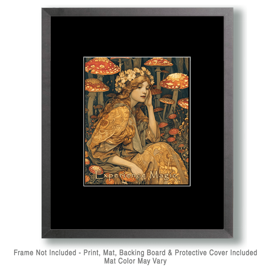 Bring a touch of whimsy and wonder to your retail collection with our captivating Fairy Art Print featuring the inspiring phrase, "Experience Magic." This enchanting piece showcases a beautiful fairy surrounded by mushrooms, inviting viewers into a fantastical world filled with imagination and charm.