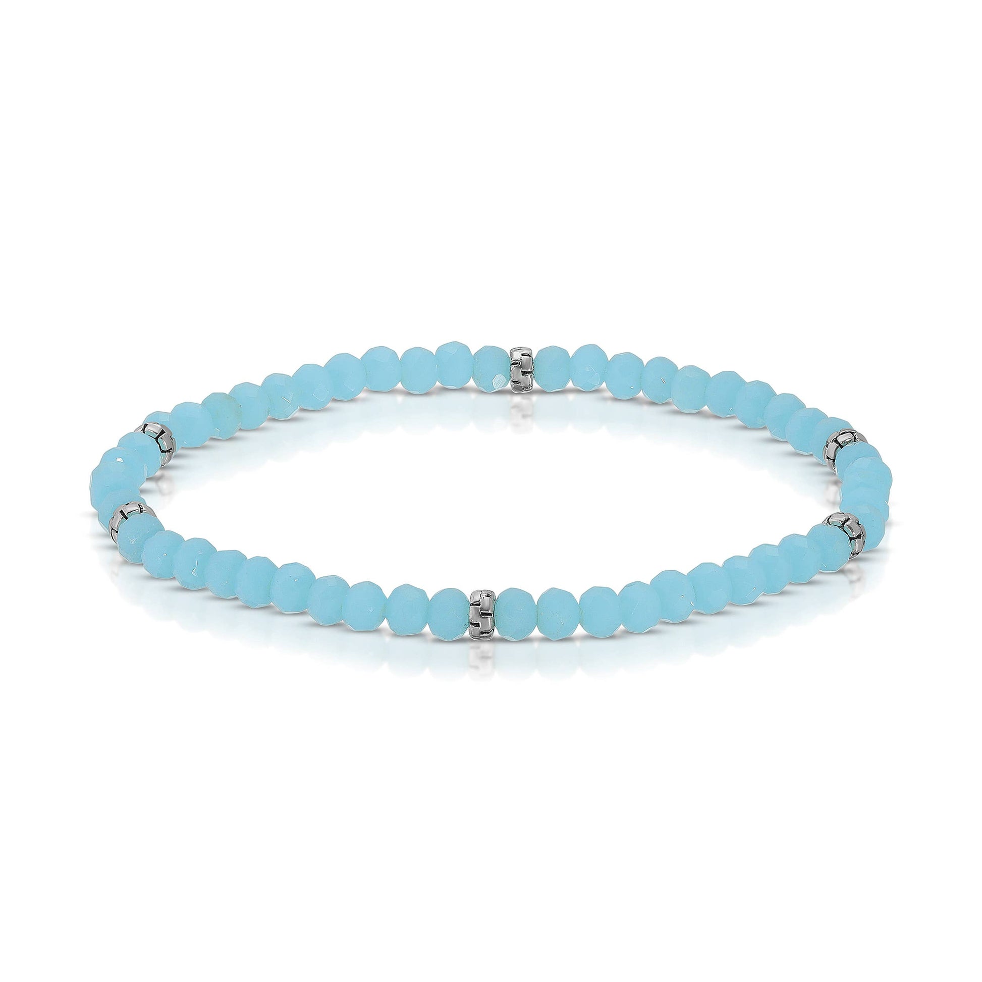 My Fun Colors - Mini Crystal Beaded Stretch Bracelet | So Many Great Colors!: Aqua Opaque+Silver Accent (MC706S)