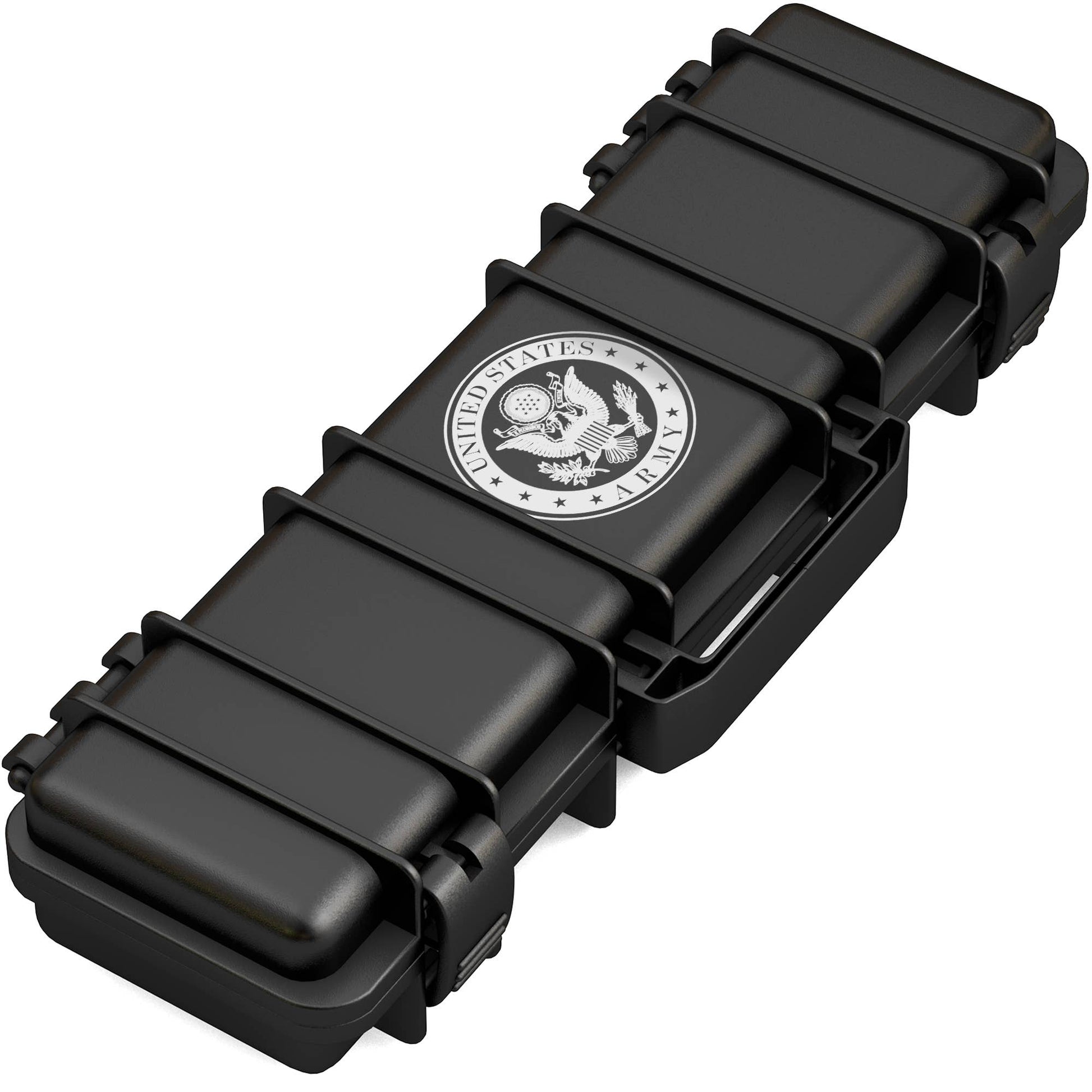 Comes complete with a gift box that replicates a real rifle case aesthetically and functionally; Two working clasps and a hinged handle for a secure closure; A sleek tactical exterior and dense foam interior