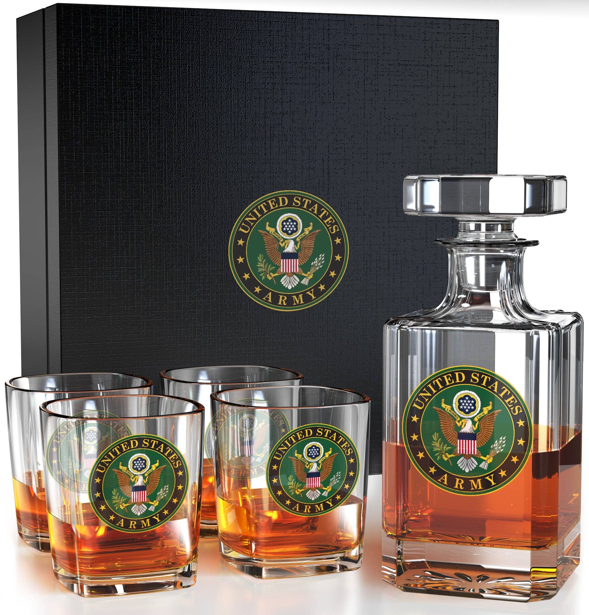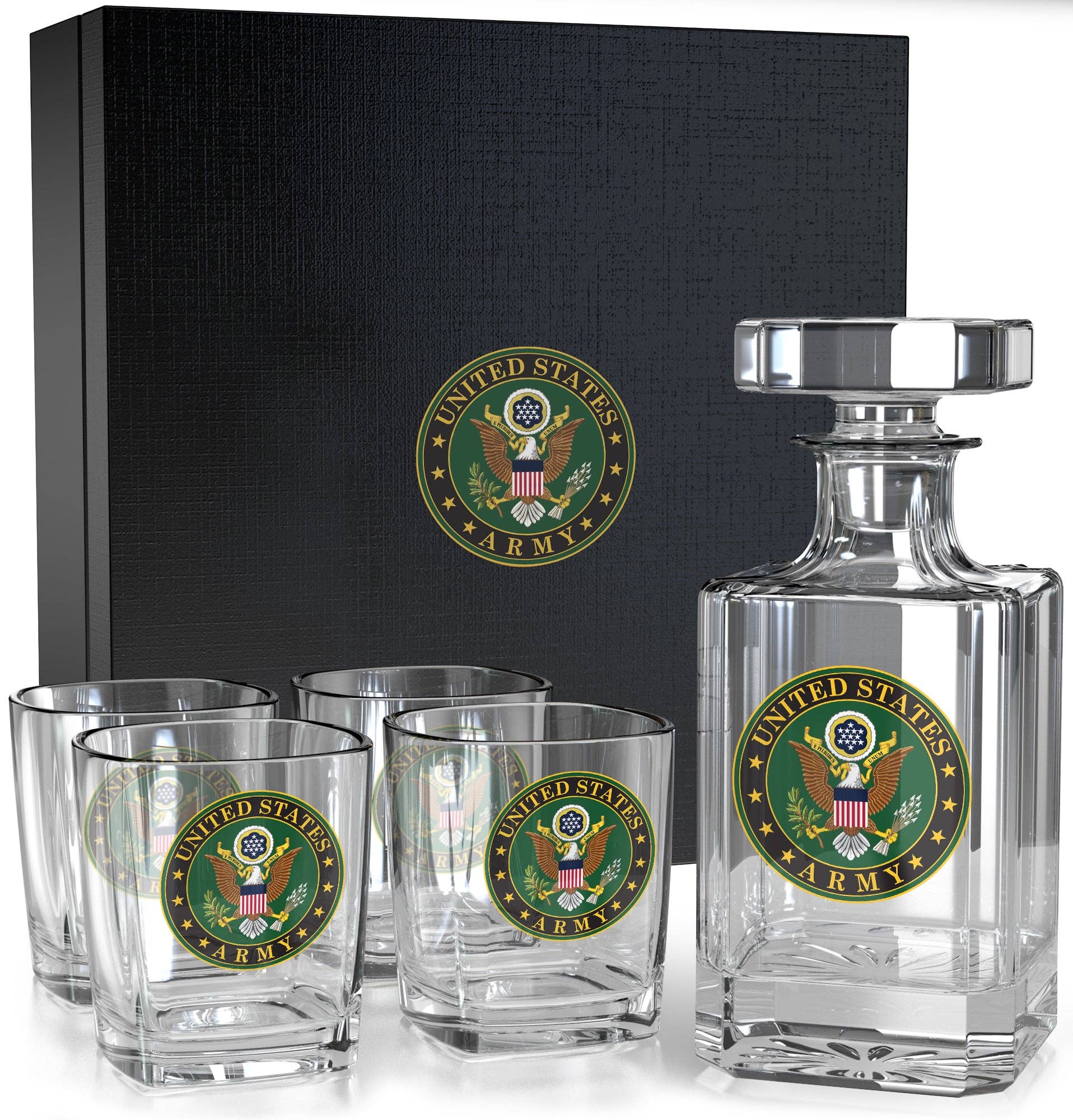 Old Southern Brass - U.S. Army Decanter Whiskey Glass Gift Set - 5 Piece Set