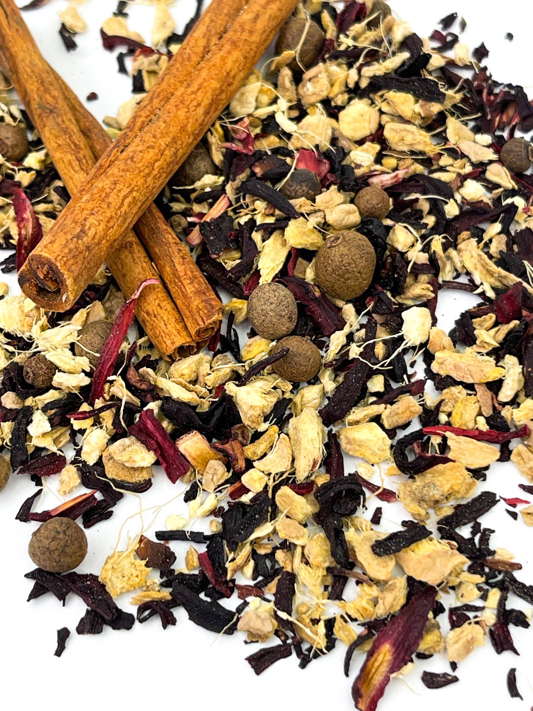 Ingredients: Cinnamon Sticks, Hibiscus Petals, Ginger, All Spice