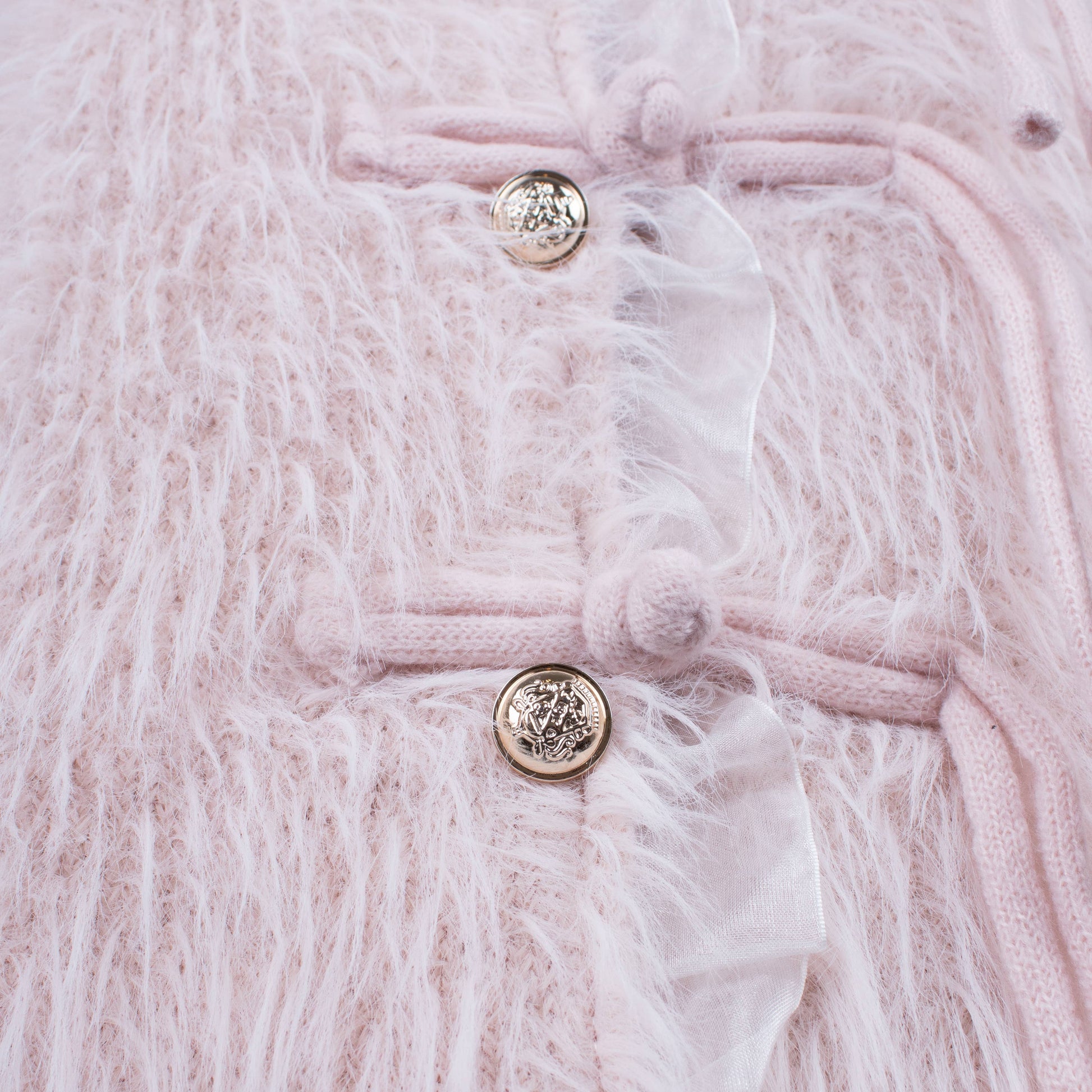 The delicate ruffled trim along the neckline and hem enhances its romantic appeal, making it a standout piece in any wardrobe. Perfect for layering over dresses or pairing with tailored trousers, the Snow Petal Cardigan offers both warmth and timeless style, ideal for creating effortlessly chic looks.