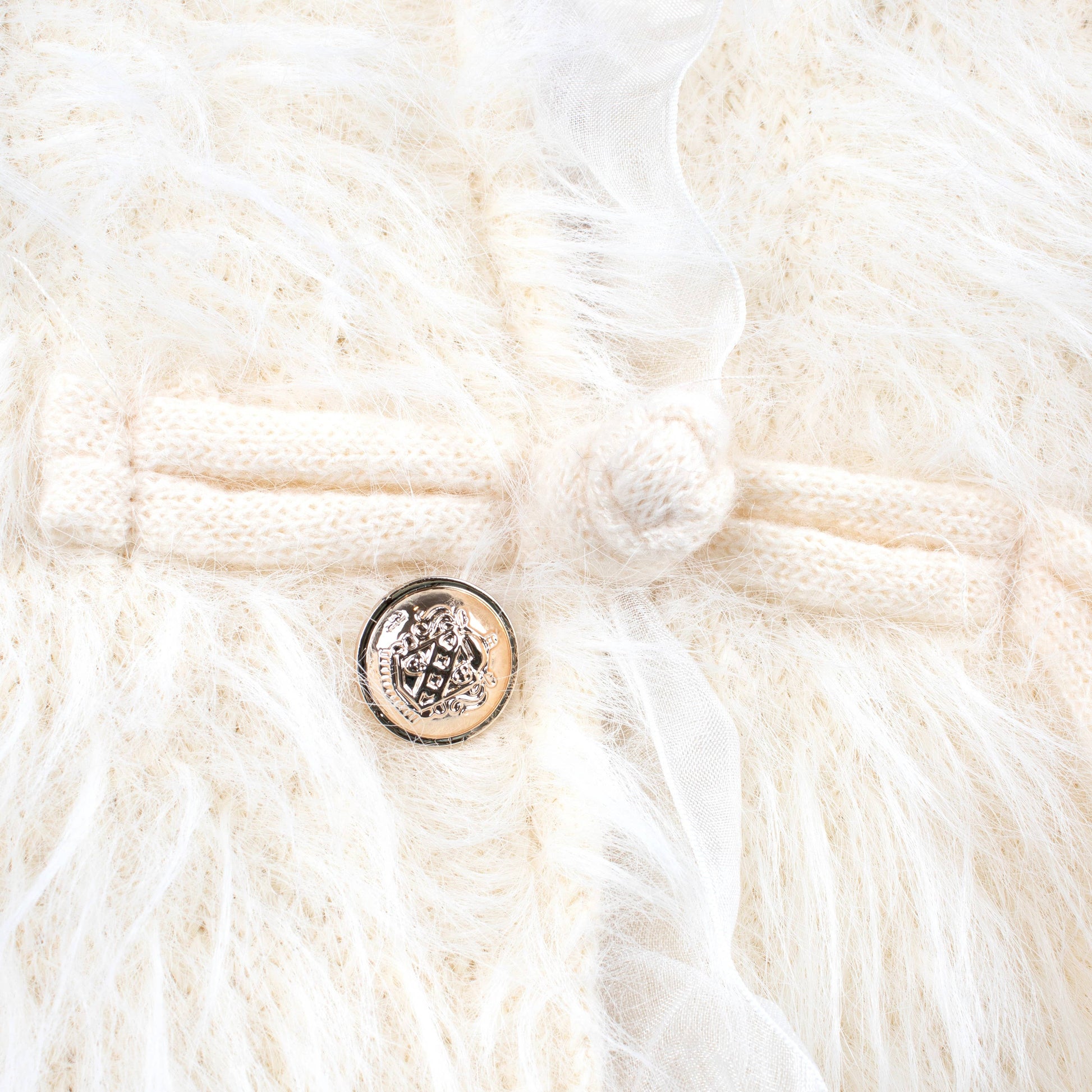The delicate ruffled trim along the neckline and hem enhances its romantic appeal, making it a standout piece in any wardrobe. Perfect for layering over dresses or pairing with tailored trousers, the Snow Petal Cardigan offers both warmth and timeless style, ideal for creating effortlessly chic looks.