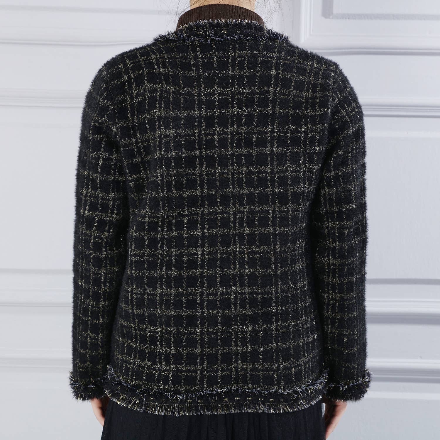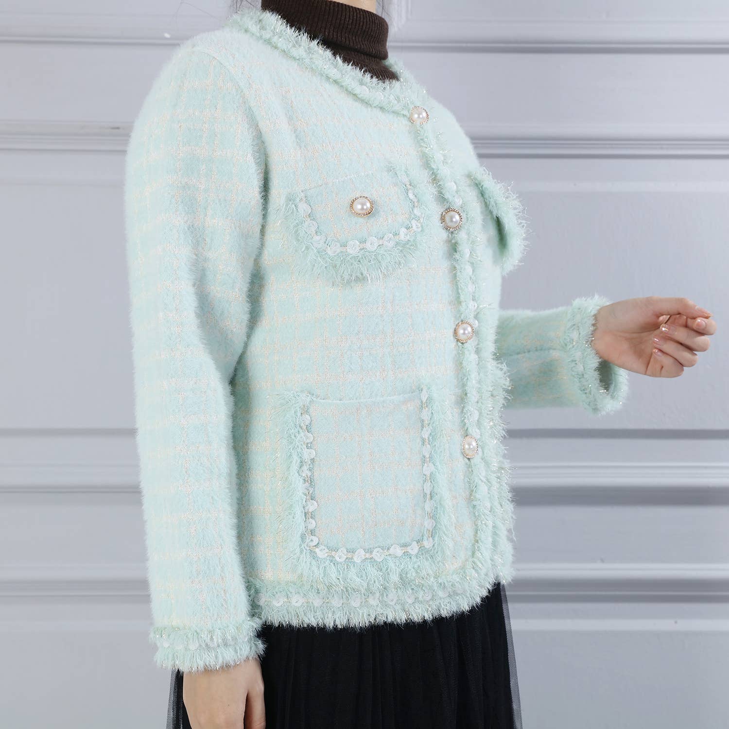This dreamy tweed cardigan is a must-have for any fashion-forward woman.
