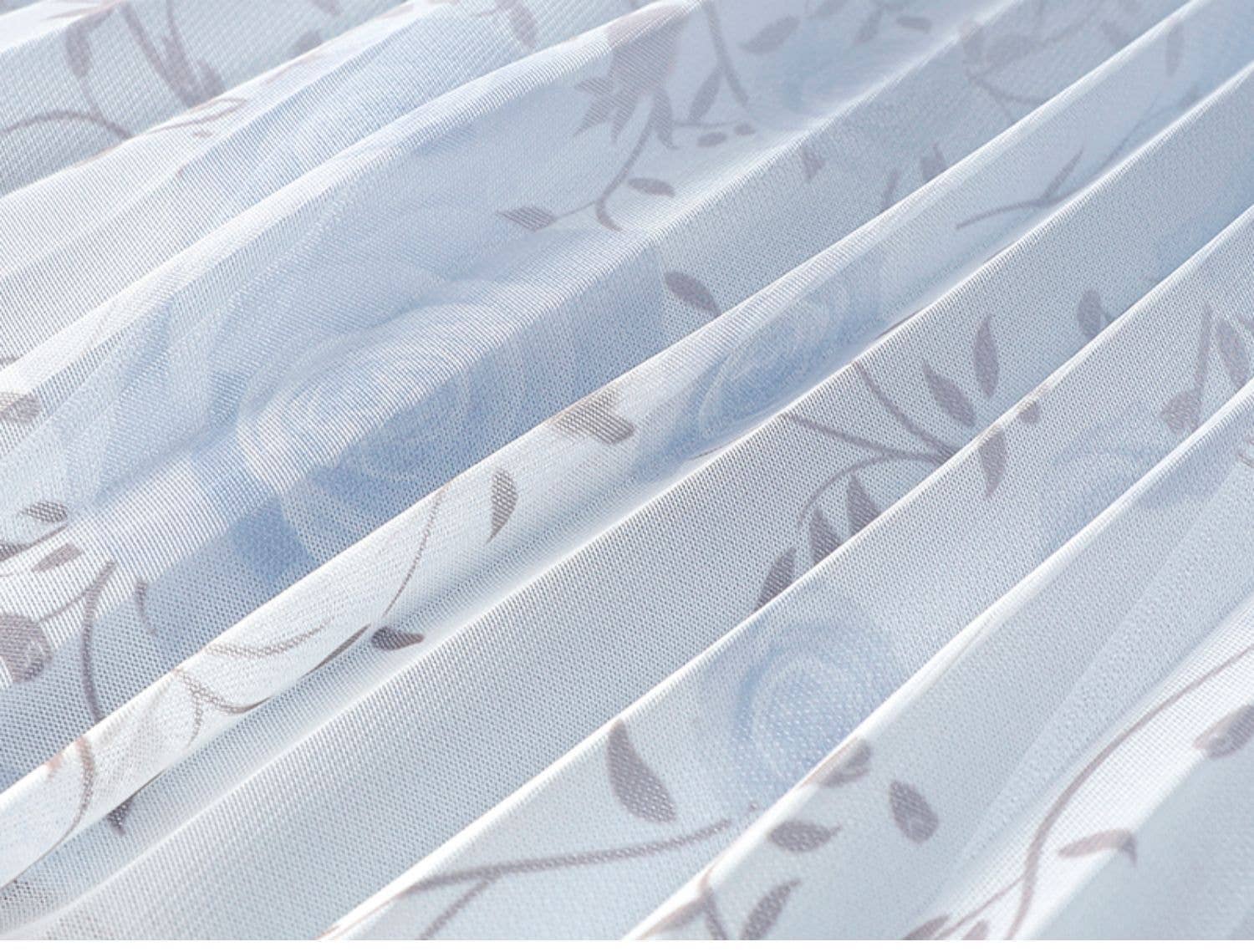 The delicate floral print adds a touch of femininity, while the classic pleats create beautiful movement.