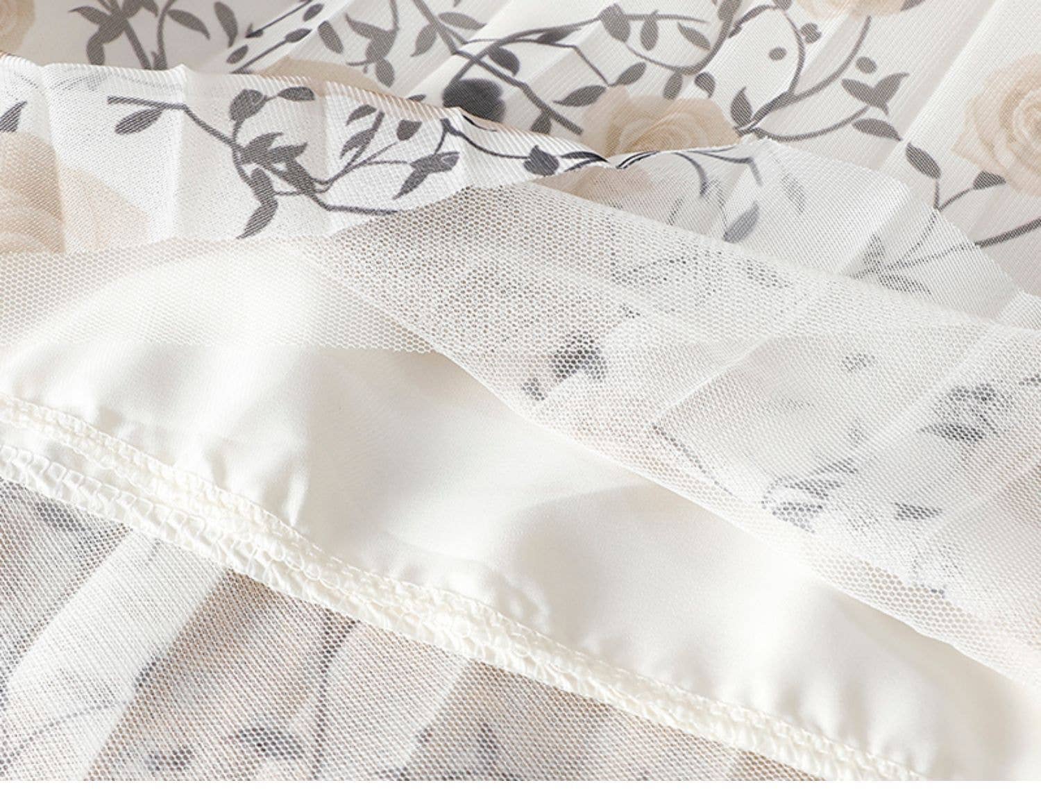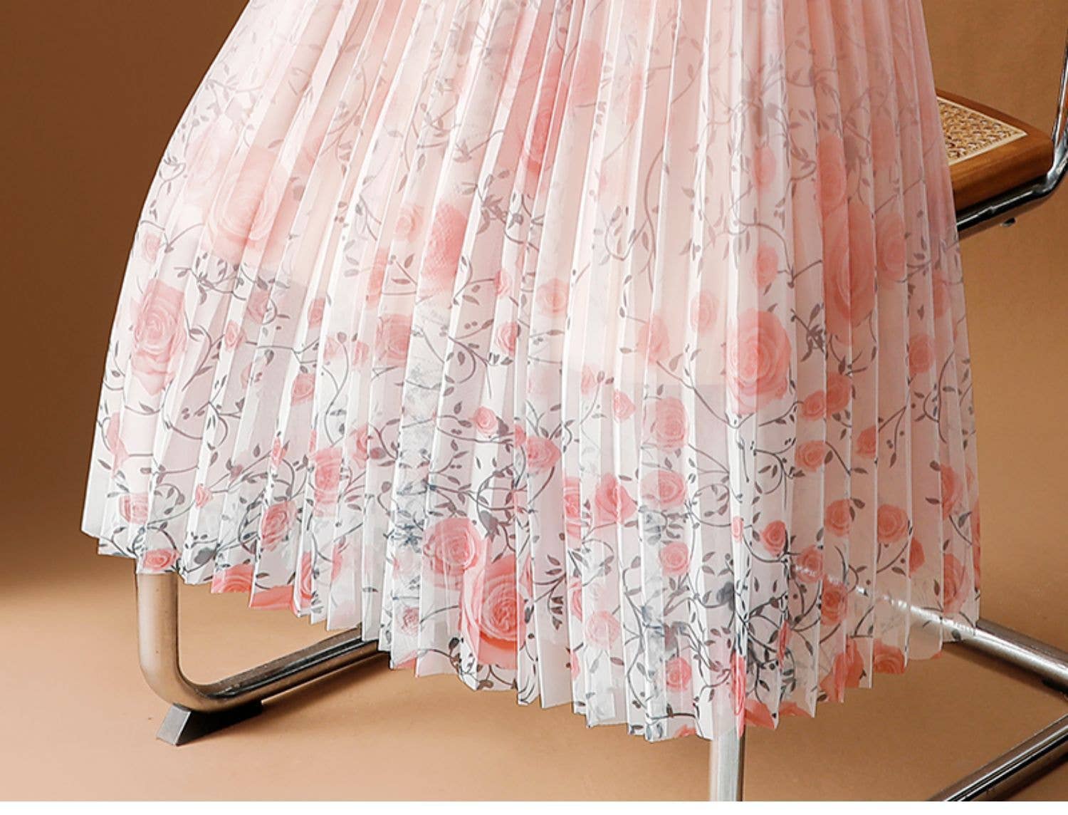 PEACH ACCESSORIES - Roses Flowers Pleated Midi Skirt SK204: Cream