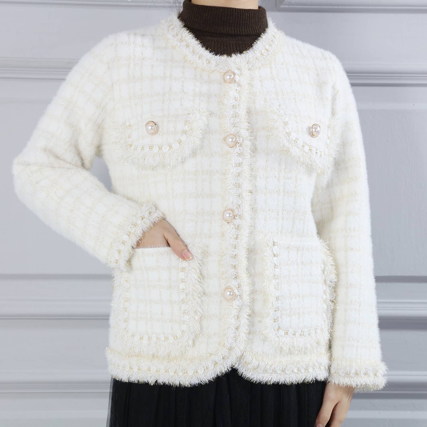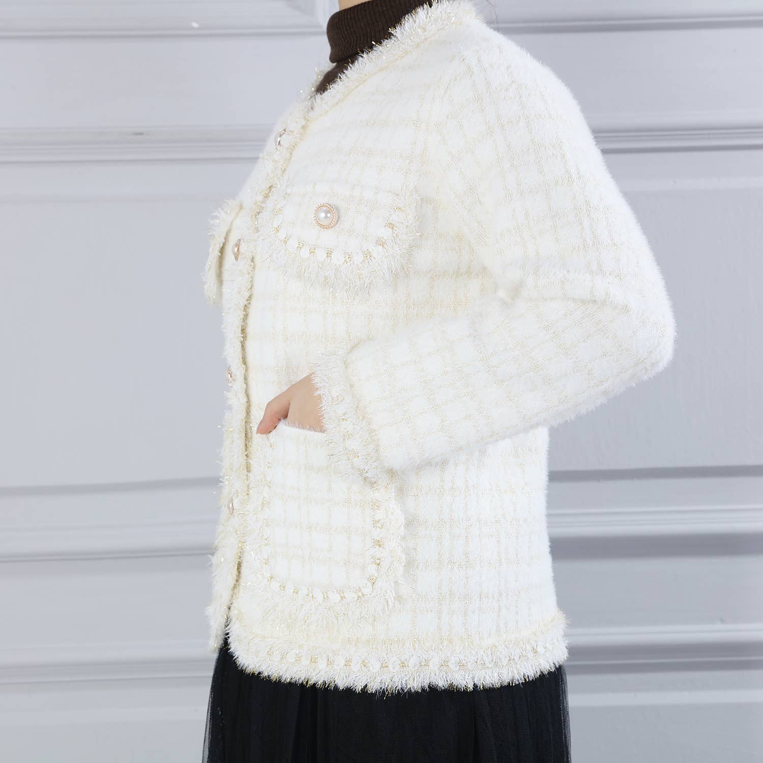 Wrap yourself in luxurious comfort and timeless style with our Tweed Soft Cardigan! Made from the finest tweed fabric, this cardigan offers a unique blend of sophistication and cosiness. Its soft and supple texture feels heavenly against the skin, providing warmth without compromising on elegance. The classic design features a flattering silhouette, making it the perfect layering piece for any occasion. Whether you're lounging at home or stepping out for a casual outing, our Tweed Soft Cardigan effortlessly elevates your look with its understated charm.