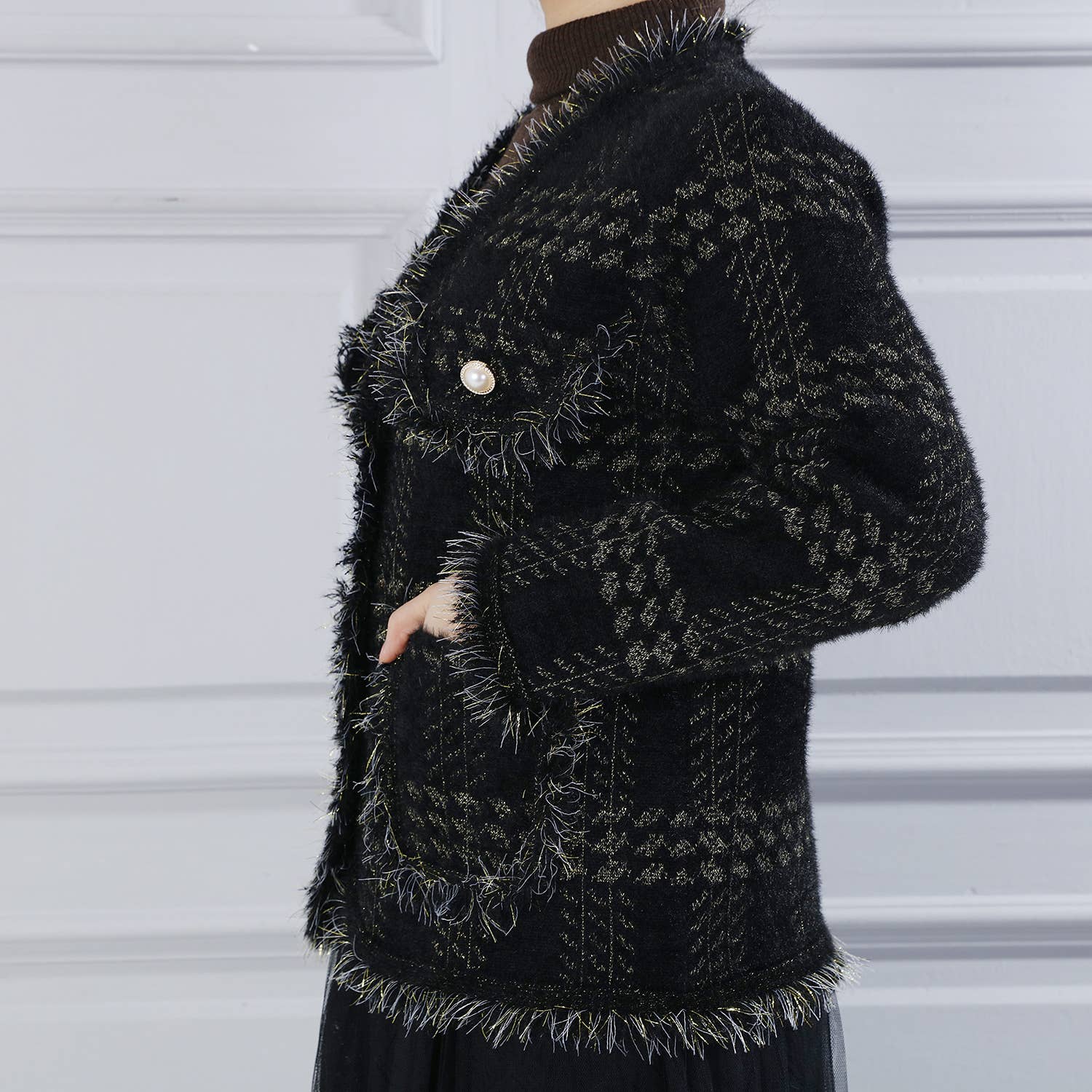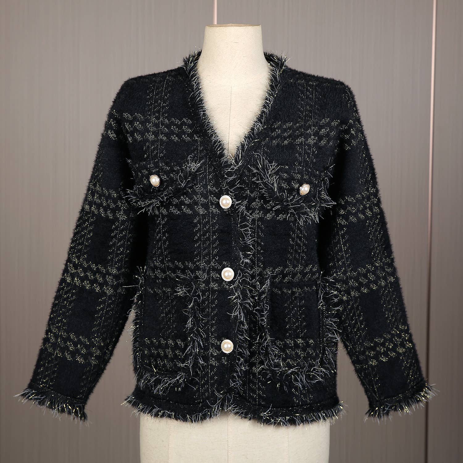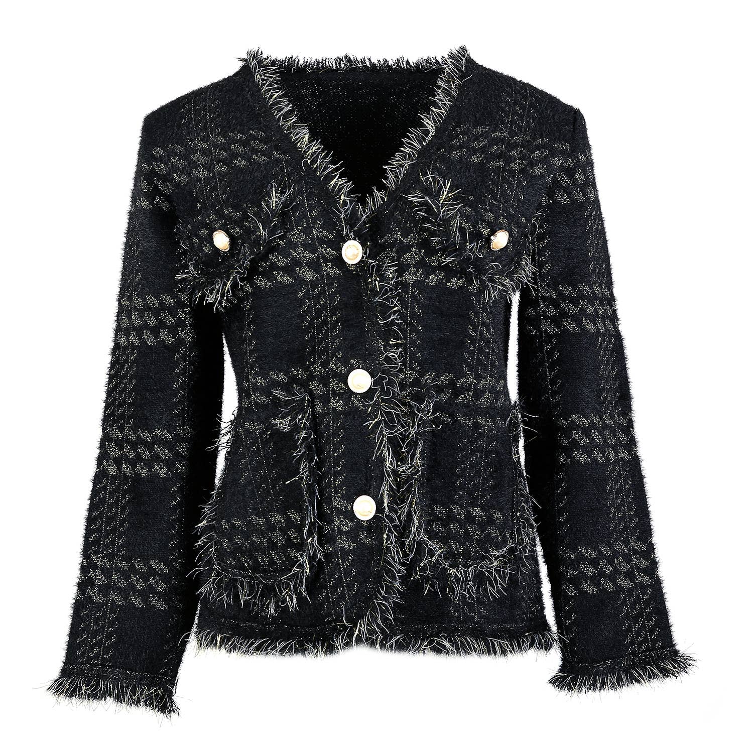 PEACH ACCESSORIES - SD190 Soft cardigan with Shinny Silver details: Black