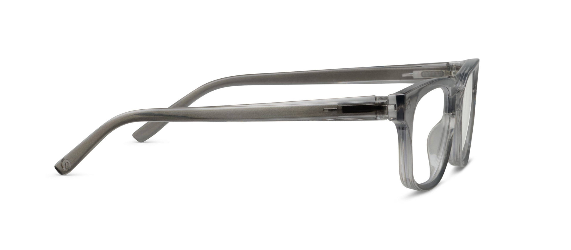 The sleek rectangular frames of Clive are a refined addition to any well-appointed wardrobe. This low-profile pair is available in a timeless translucent gray for a neutral look, or semi-transparent teal for when you want to add a little color. The temple step colorblock adds another element of dimension to this sophisticated style.