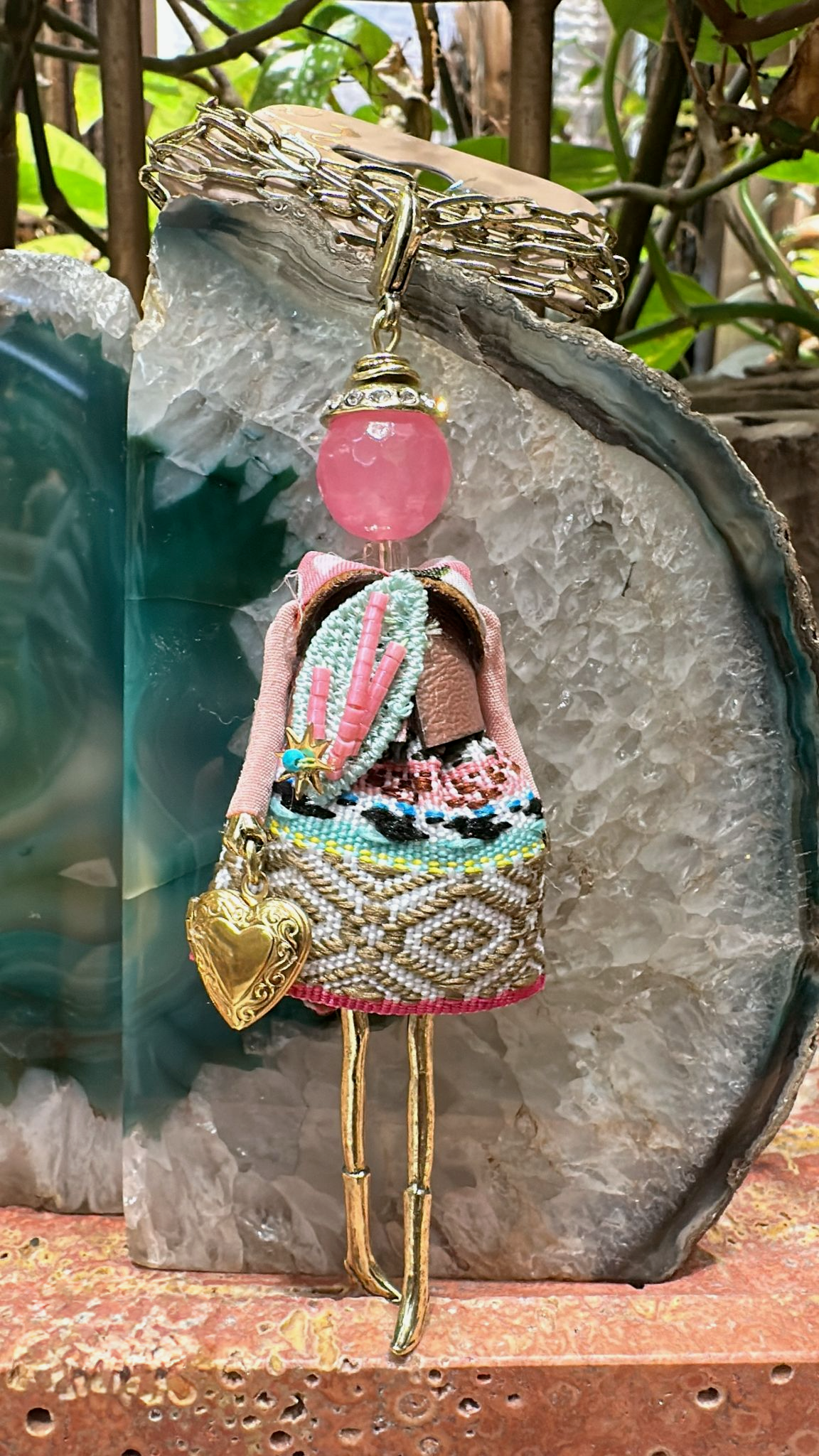 Pretty Persuasions - N23188G Stone Adorned French Doll Stainless Steel Necklace: 03 GD/Mint