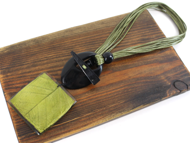 Pretty Persuasions - N25371 Bold Geo Polyresin Multi-Cord Statement Necklace: 01 Olive/Black