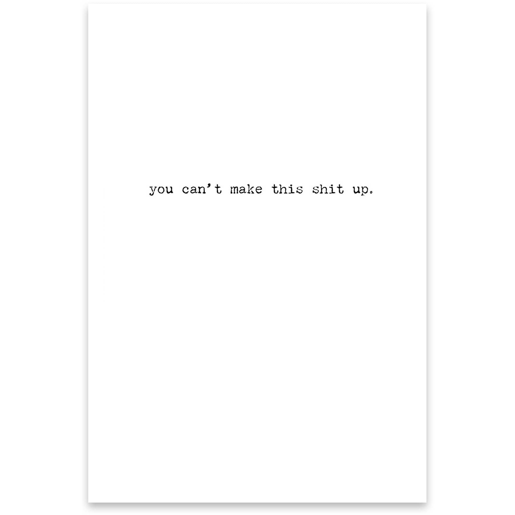 A humorous greeting card from our Trash Talk by Annie Collection features a vintage photograph with "We Really Need Our Own Reality Show…" sentiment on the outside, and "You Can't Make This Shit Up." sentiment on the inside. Our Reality Show greeting card is made in the USA.
