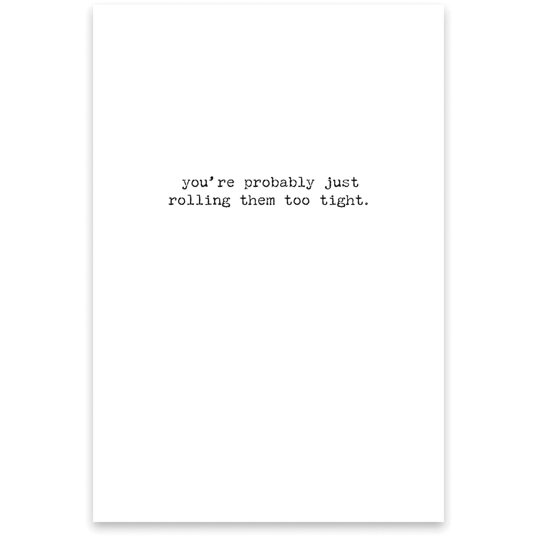 A humorous greeting card featuring vintage photography with outside "If Your Joints Are Stiff..." and inside "You're Probably Just Rolling Them Too Tight." sentiments. Made in the USA.