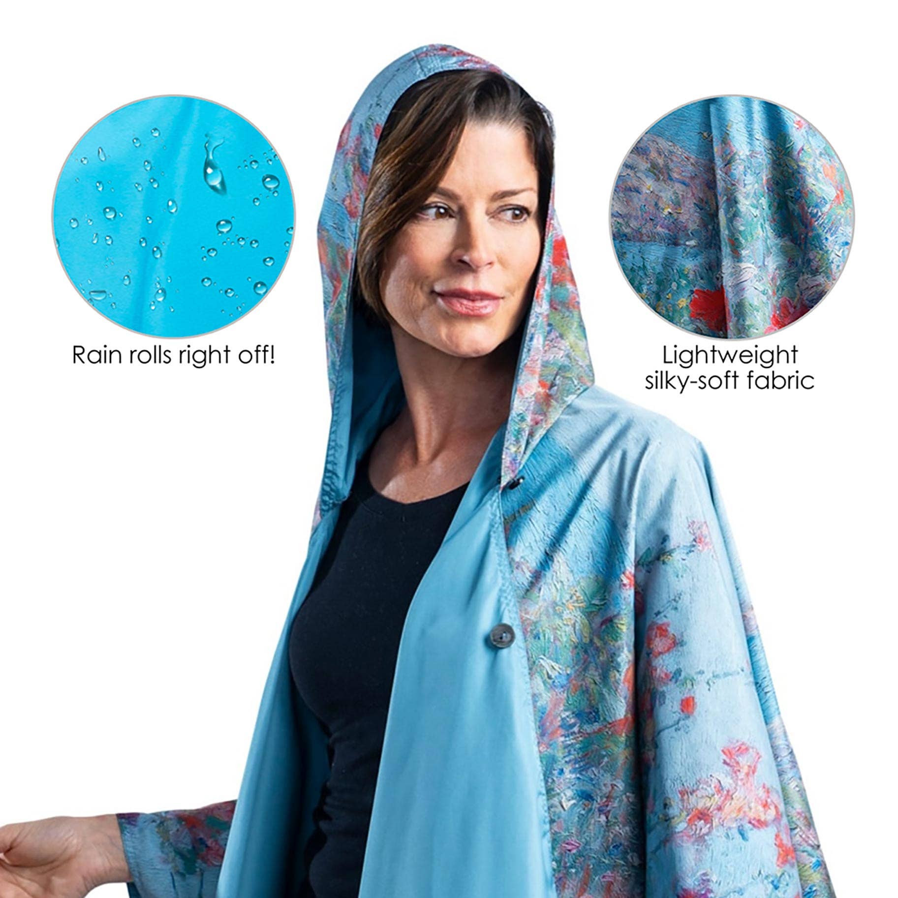 More than a lightweight women’s rain poncho, the packable, rainproof & windproof travel cape offers effortless comfort and timeless style. Enjoy the silky-soft, luxurious, and supple fabric as you wrap yourself in this fashionable travel cape that makes it clear you’re going places. Ideal for transitional weather, it may be worn as a cape alone, or wear it over a jacket or coat in cooler or rainy weather – the ultra-versatile RainCaper works drizzle or downpour, rain or shine.