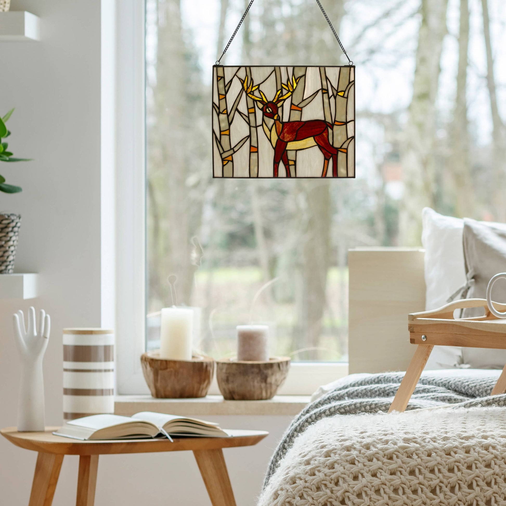 River of Goods - 11"H Majestic Deer Stained Glass Window Panel