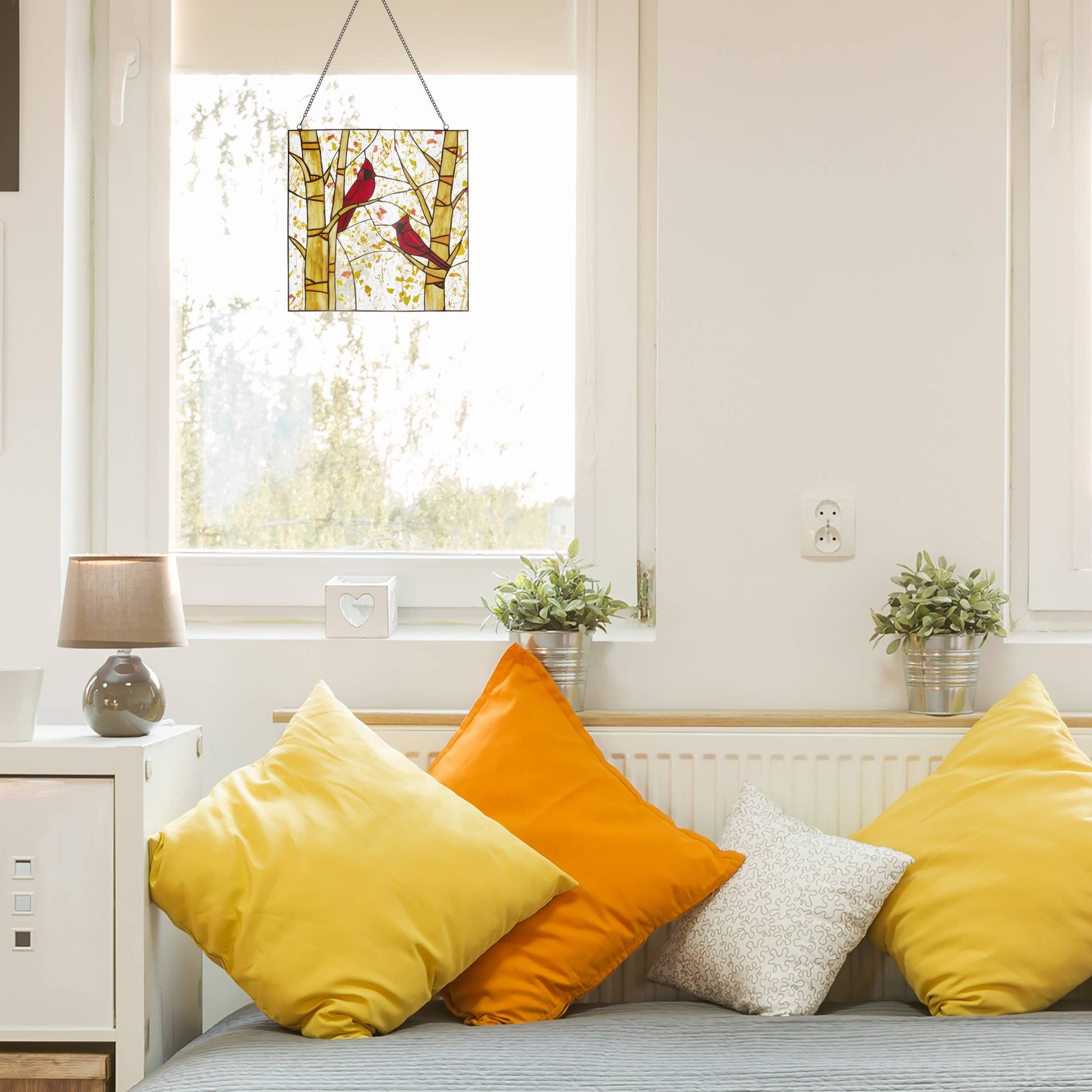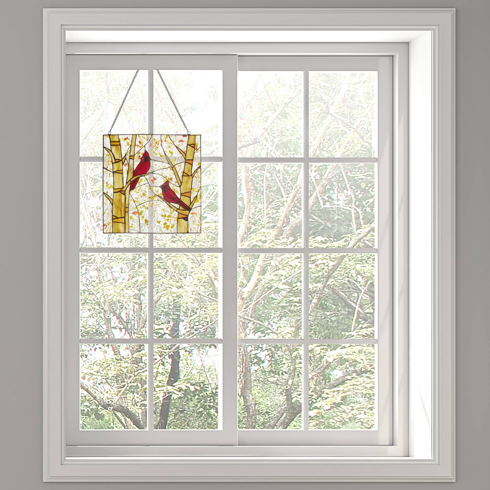 River of Goods - 14"H Eden Red Cardinals in Autumn Stained Glass Window Panel