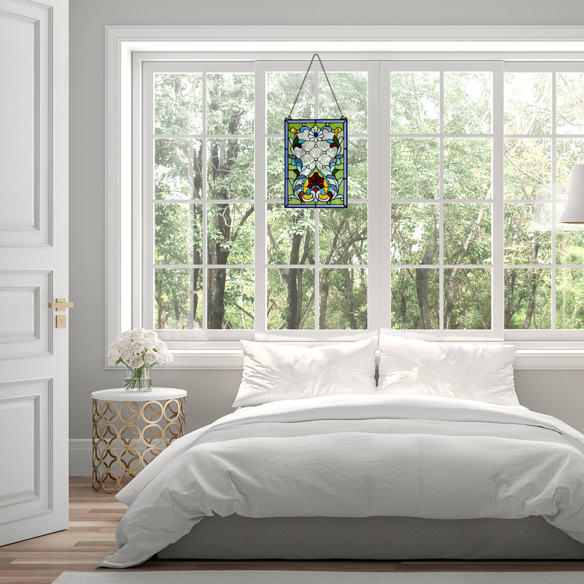 River of Goods - 19"H Alice Flower and Vine Stained Glass Window Panel