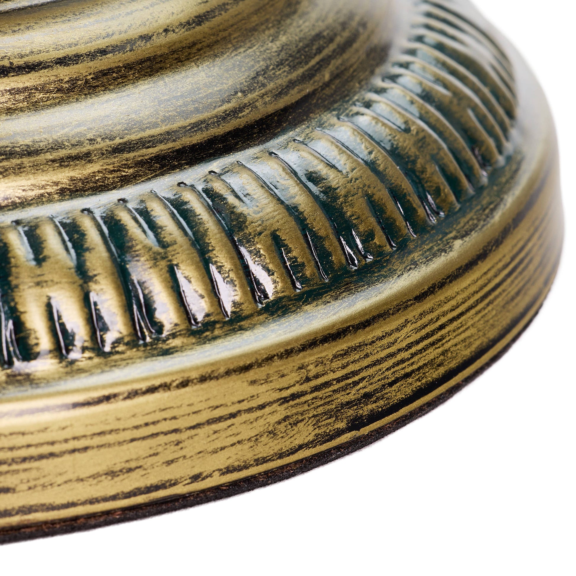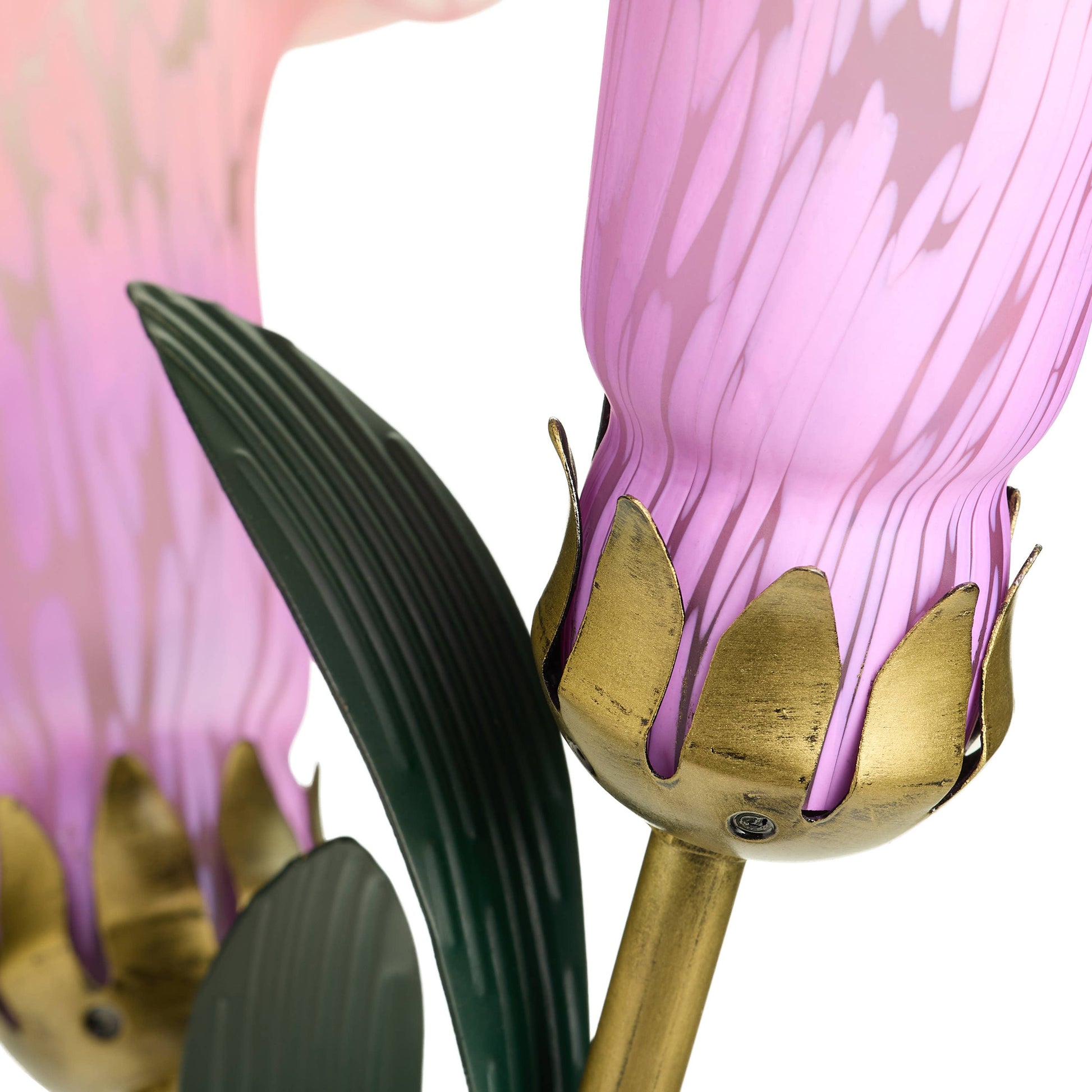Brushed bronze-finish metal base with green hand painted leaves