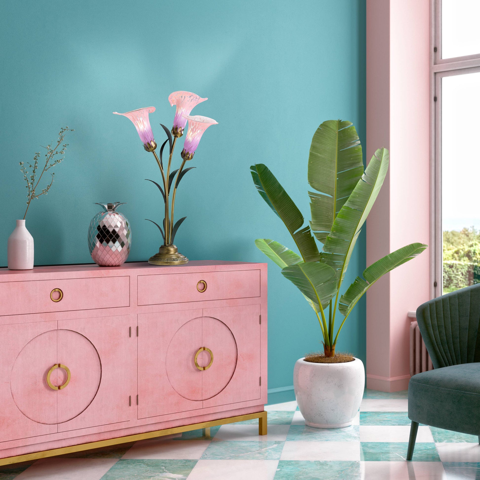 River of Goods - 23.5"H Pink 3 Shade Handblown Glass Calla Lily Table Lamp