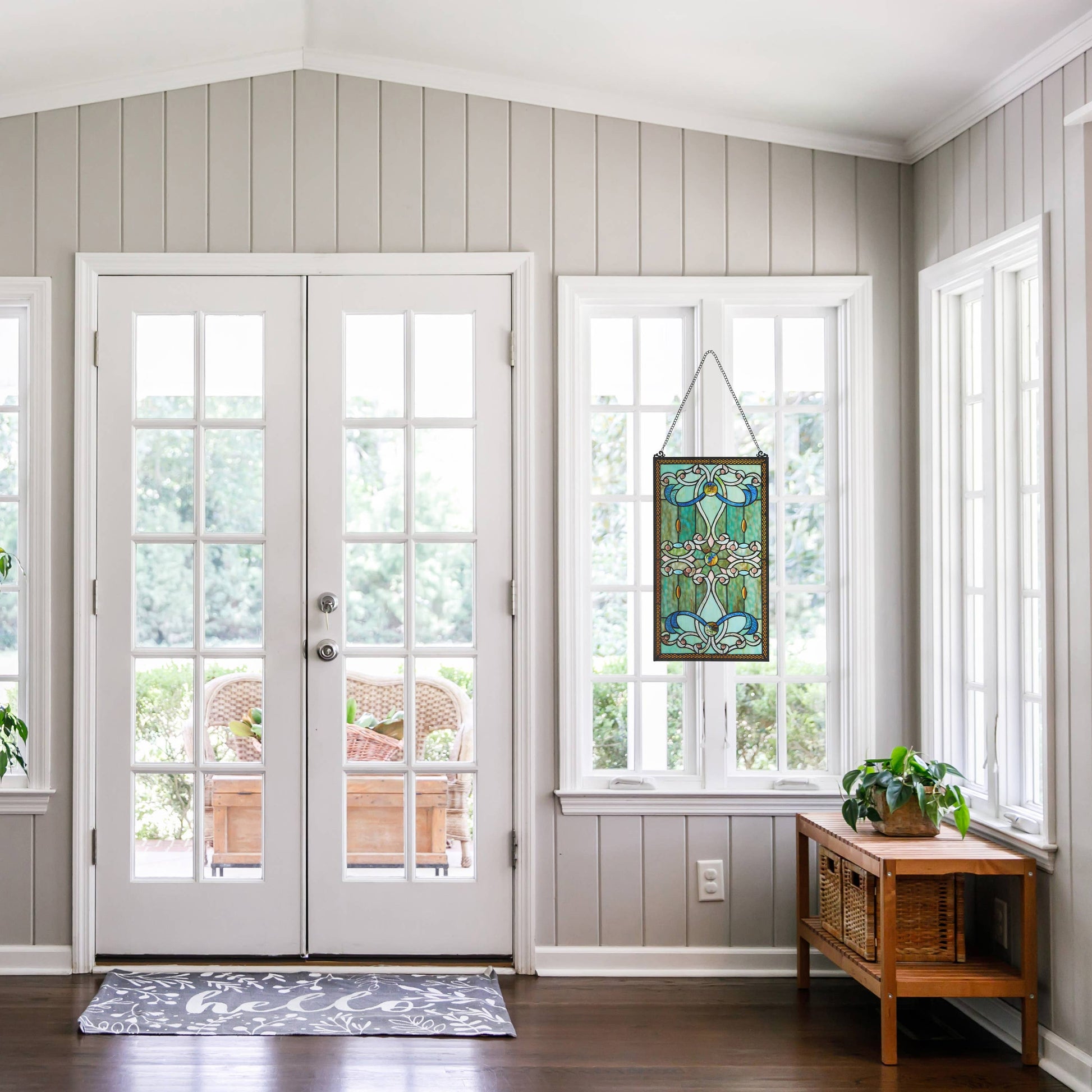 River of Goods - 26"H Wyatt Green Stained Glass Window Panel