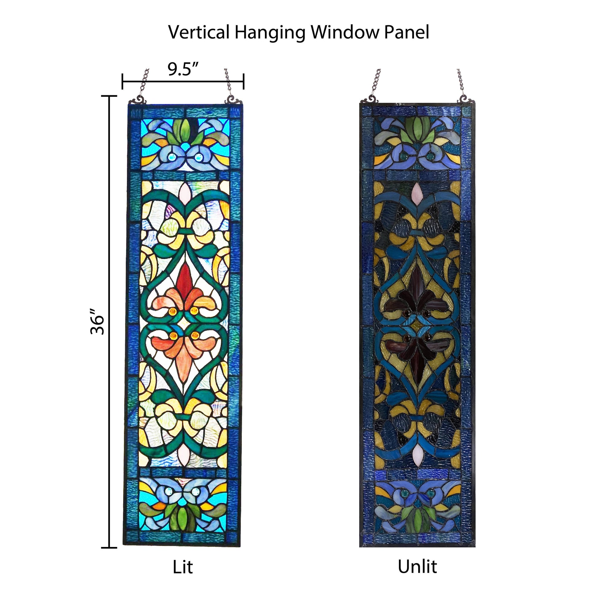 River of Goods - 36"H Lani Victorian Red or Blue Stained Glass Window Panel: Blue