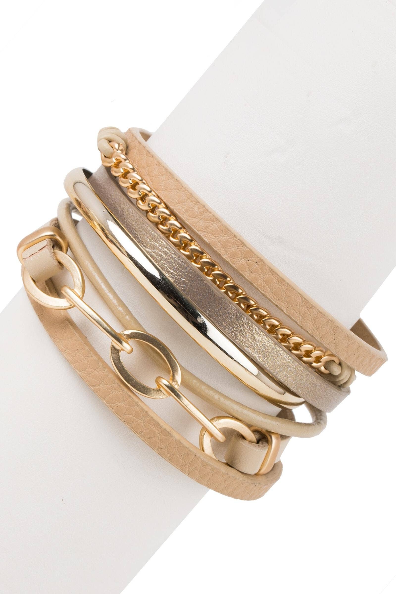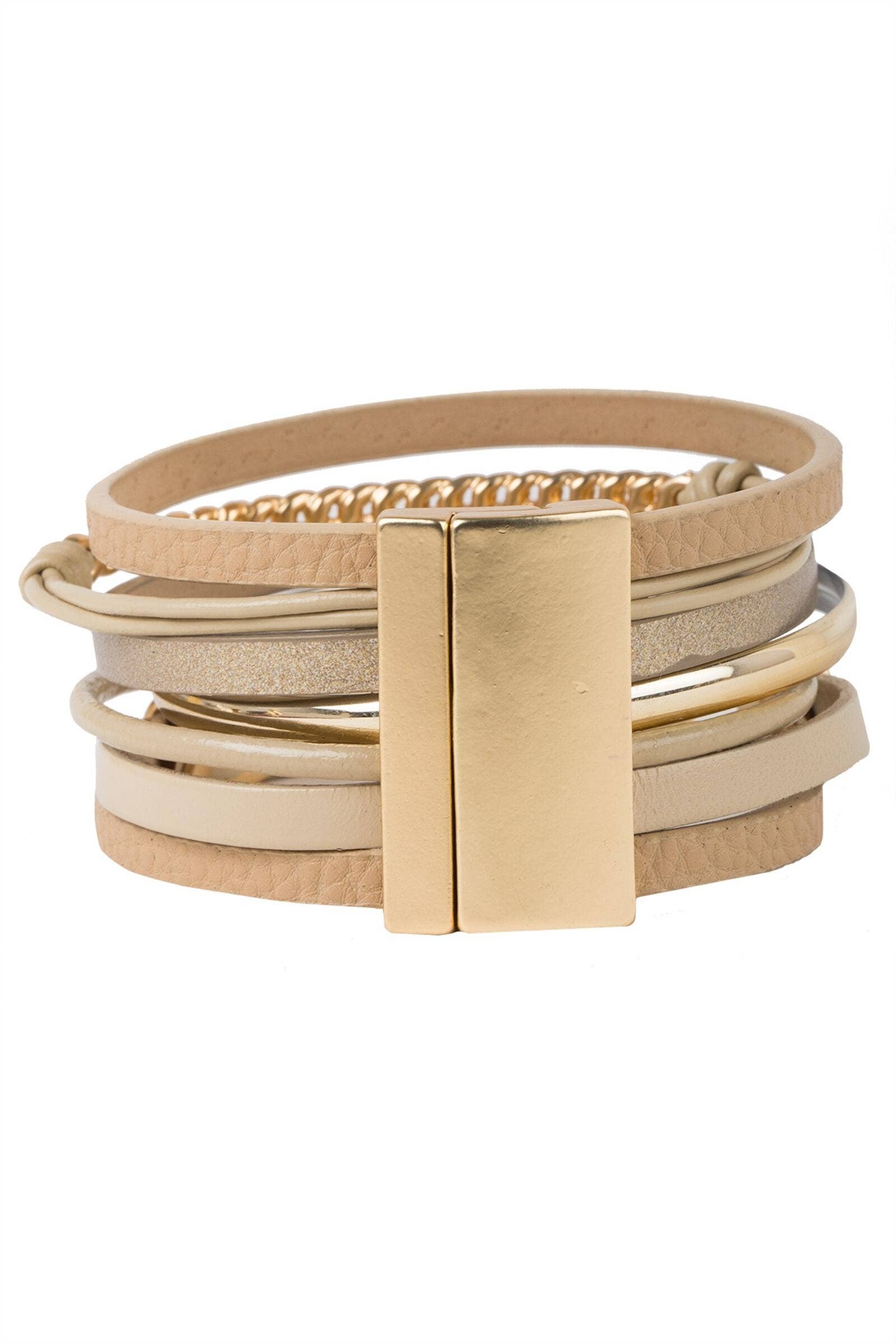 If you’re looking for something chic and modern, you’ll love our Brink Bracelet. Featuring vegan leather cords, gold metallic accents, and a contemporary chain link design, this piece complements any outfit. Dress up jeans and a tee or pair with your favorite dress for a girls’ night out.