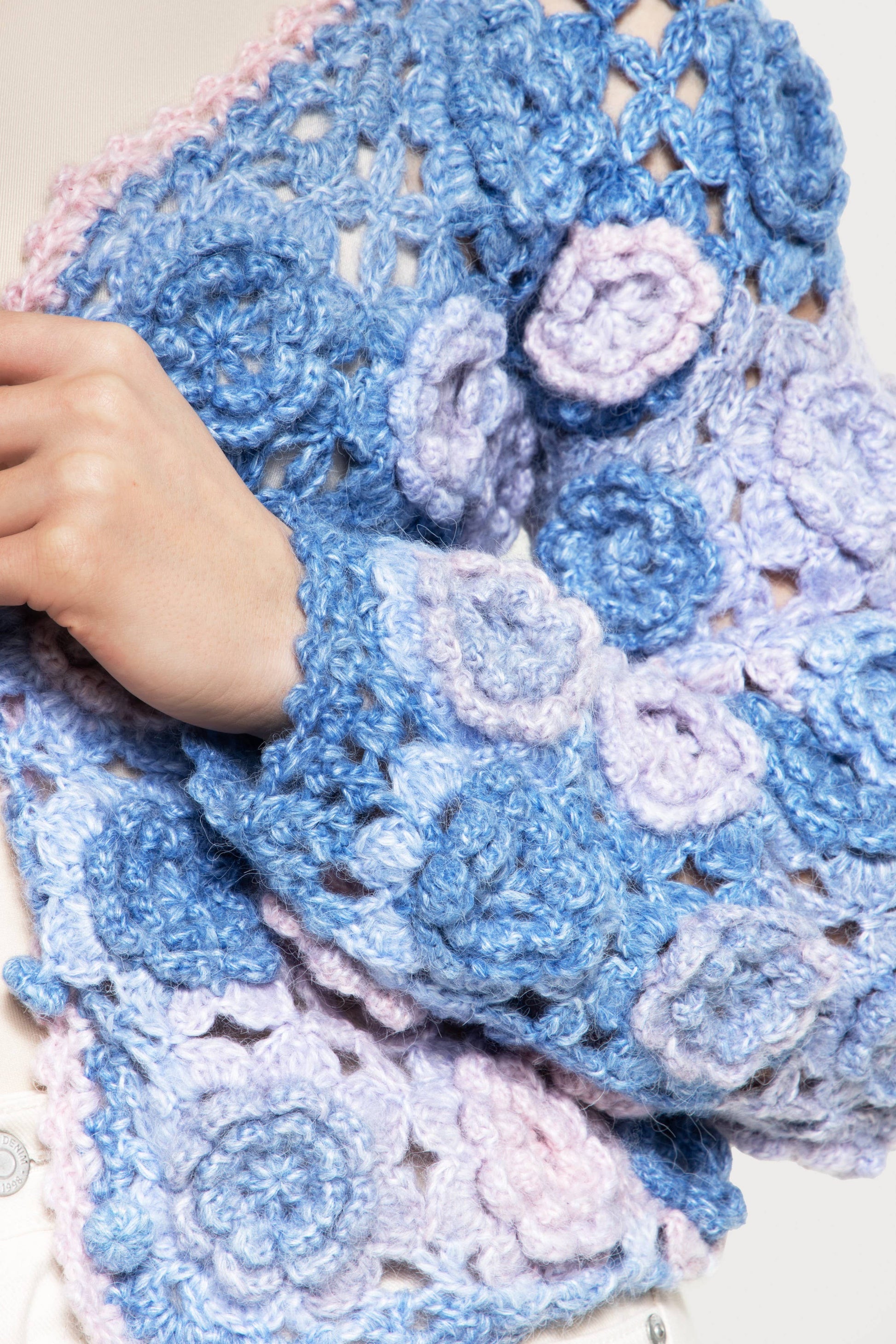 Our Crochet Blossom Cardigan is a true testament to artisanal craftsmanship and timeless elegance. Each delicate floral appliqué is meticulously crocheted, creating a stunning botanical motif that adds whimsy to your wardrobe. The soft and warm crochet construction ensures comfort and coziness, and the buttons allow for easy closure and versatile styling options, making it a perfect layering piece for cooler days or evenings. Whether worn casually over a simple tee or dressed up for a special occasion, this cardigan is bound to capture attention, thanks to its undeniable charm.