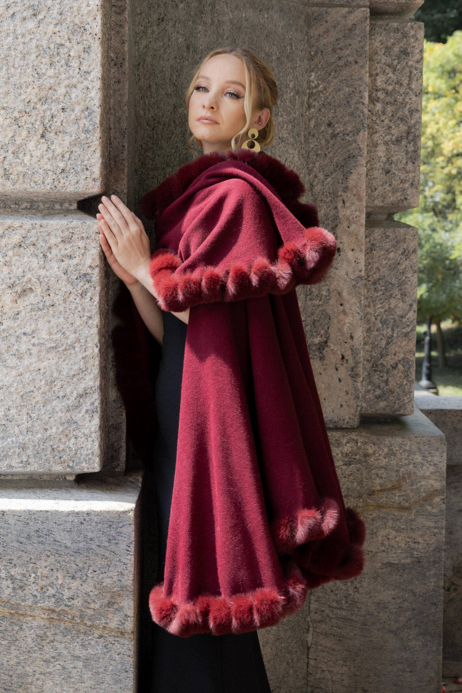 This gorgeous faux fur cape kimono will complete your fall ensemble. The lightweight, warm, and soft-to-the-touch cloth used in the construction is of the highest quality. The faux fur design on the sleeves and collar is the highlight, giving it a timeless look! It's ideal for both outdoor activities and everyday wear!