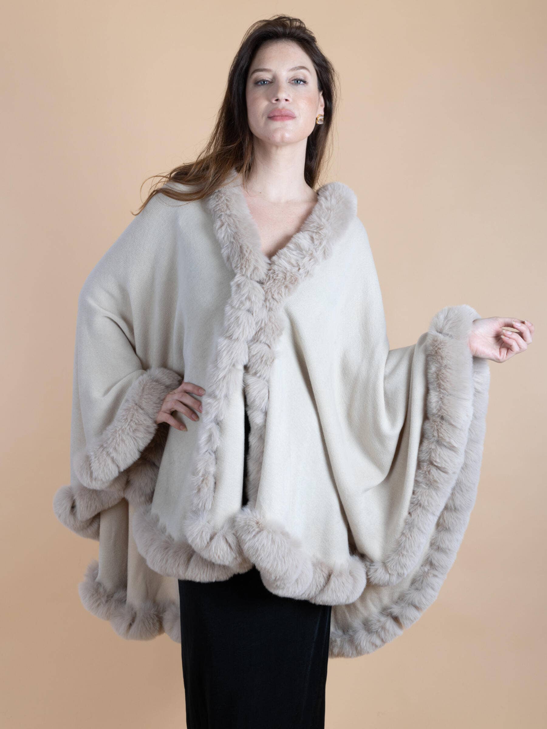 SAACHI - Faux Fur Cape Kimono: IVORY
