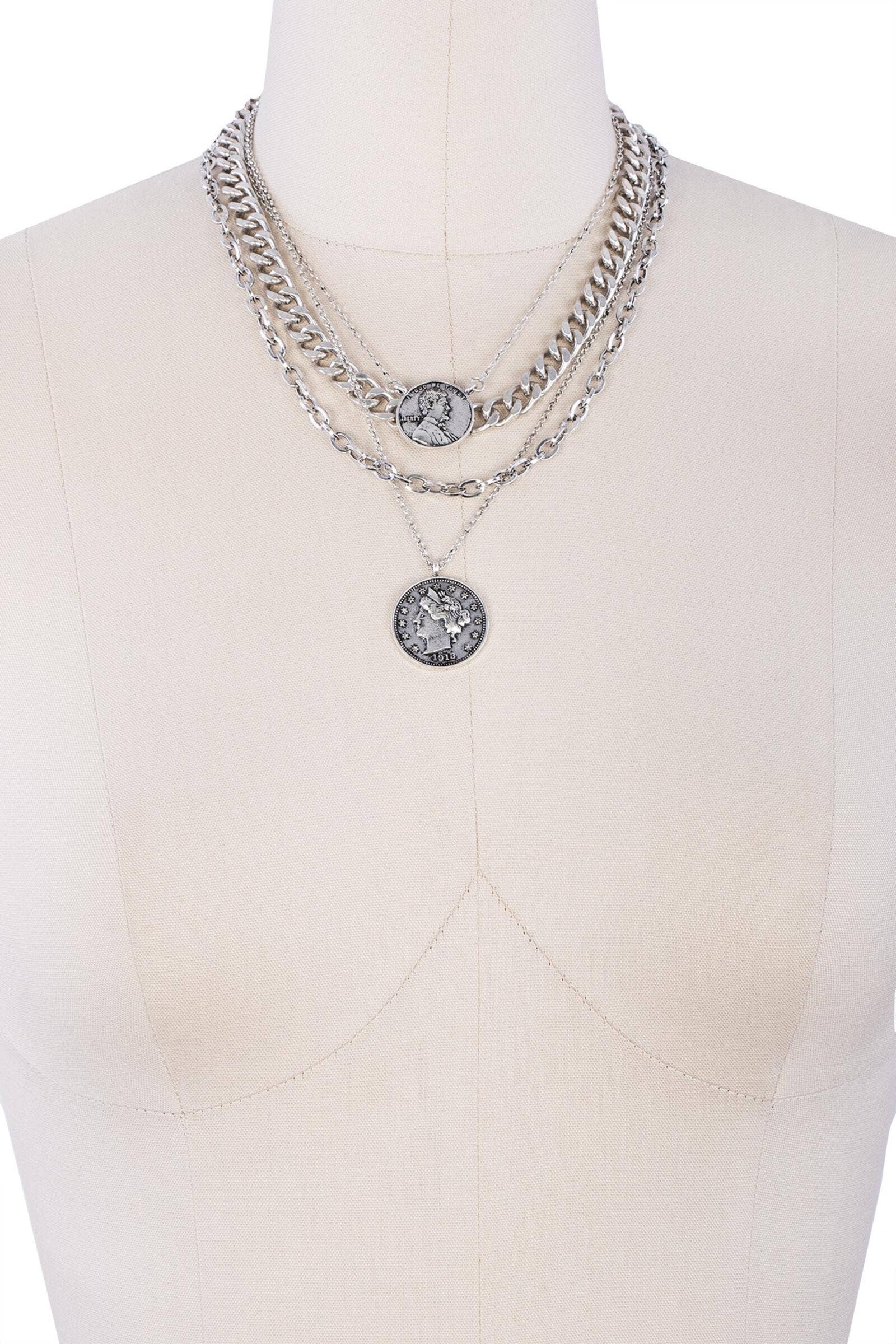SAACHI - Sikka Coin Layered Chain Necklace: Silver