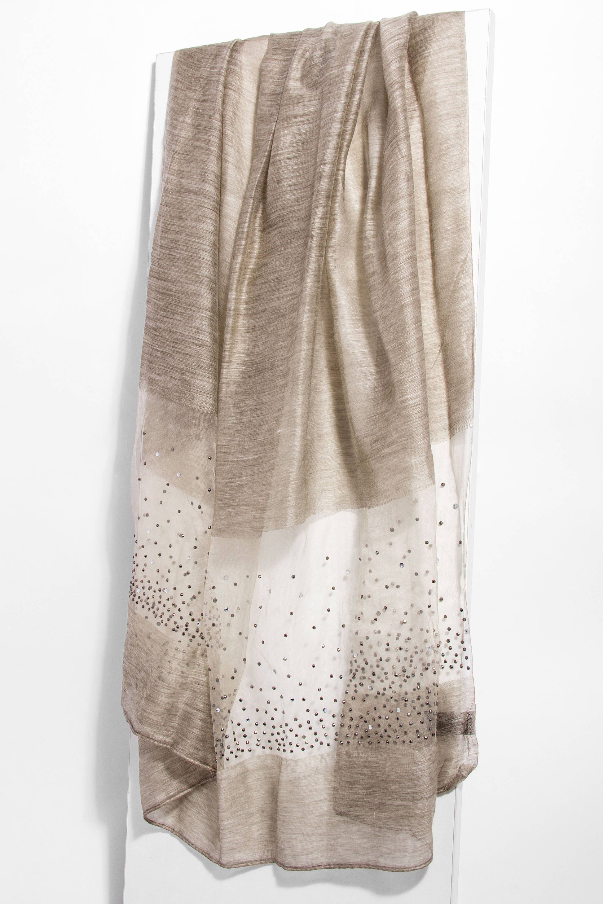 SAACHI - Star Gazer Wool Blend Sparkle Silk Scarf: Taupe
