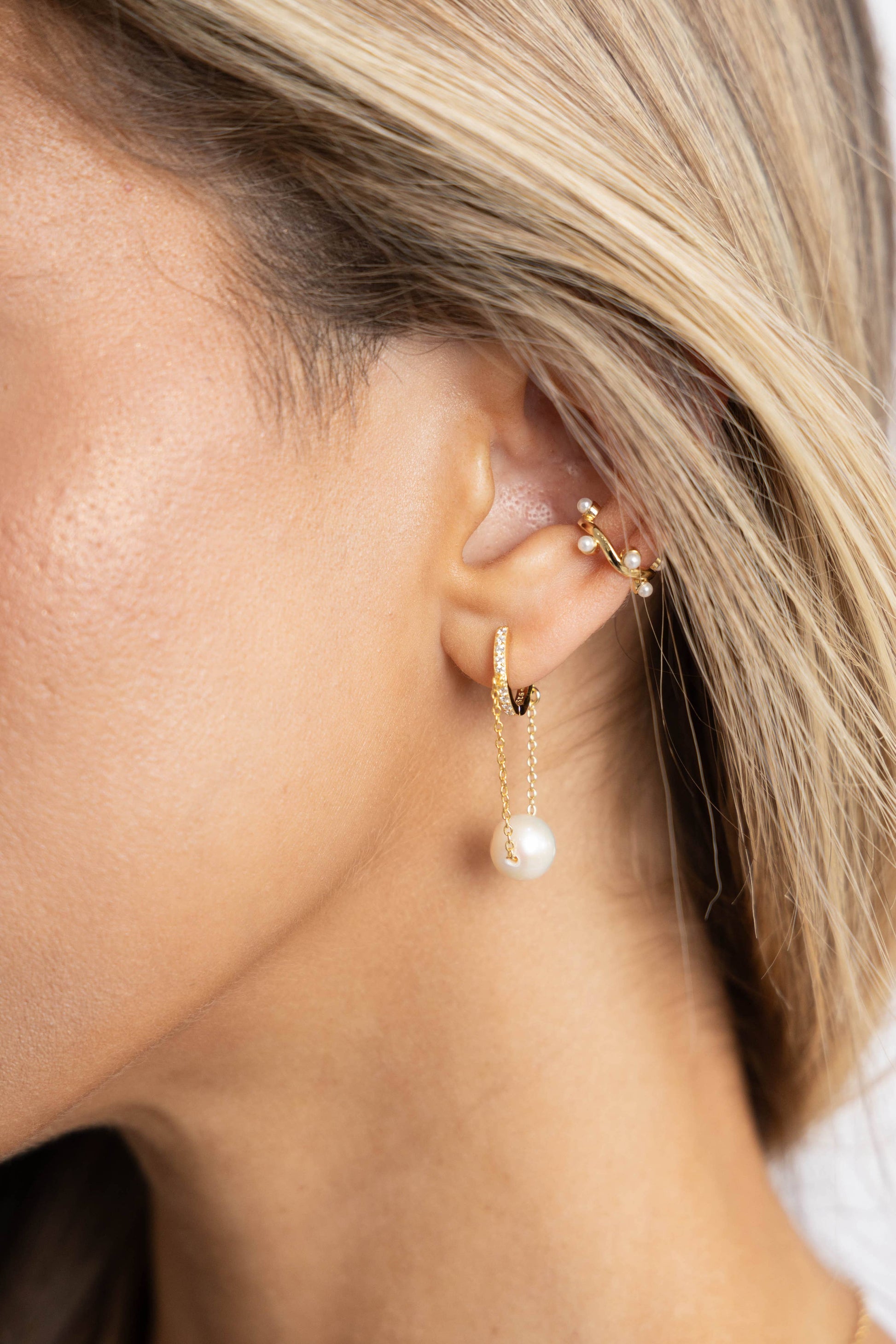 Sahira Jewelry Design - Hillary Pearl Chain Huggies: Silver