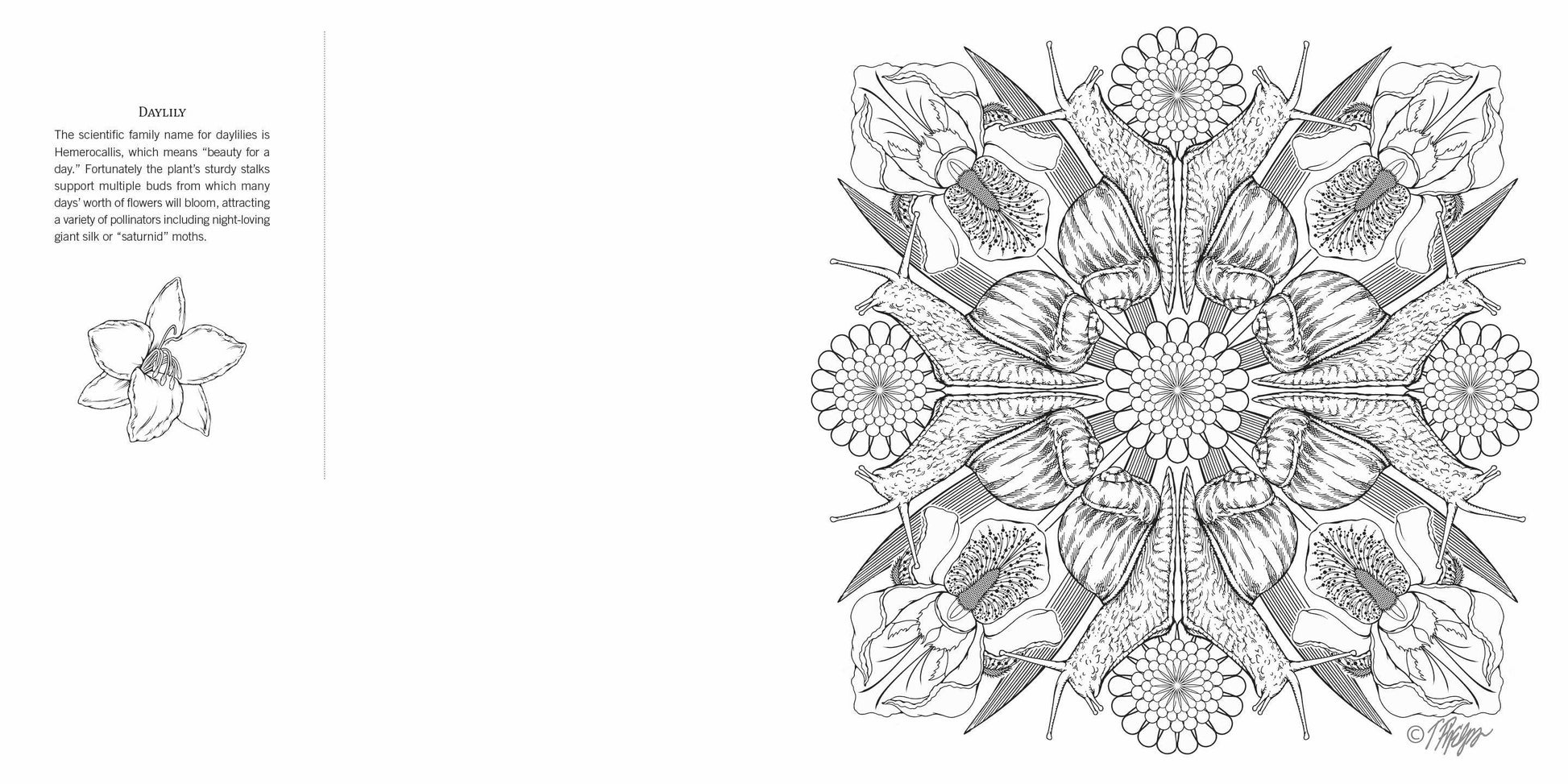 The meditative mandalas in this coloring book celebrate the amazing biodiversity in nature, and the myriad shapes and colors found in plants and insects and the varied habitats and ecosystems in which they all live.