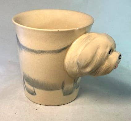 Maltese are little things, only about 4 pounds but they are playful and affectionate. Hand painted, microwave and dishwasher safe. Prop 65 compliant. Great for soup as well as coffee and tea and make good containers for toothbrushes, make up and pens too. Love these mugs as containers for small plants such as spleenworts and succulents. Fill with candy, wrap with pretty paper and ribbon and enjy great sales for Valentine's Day.