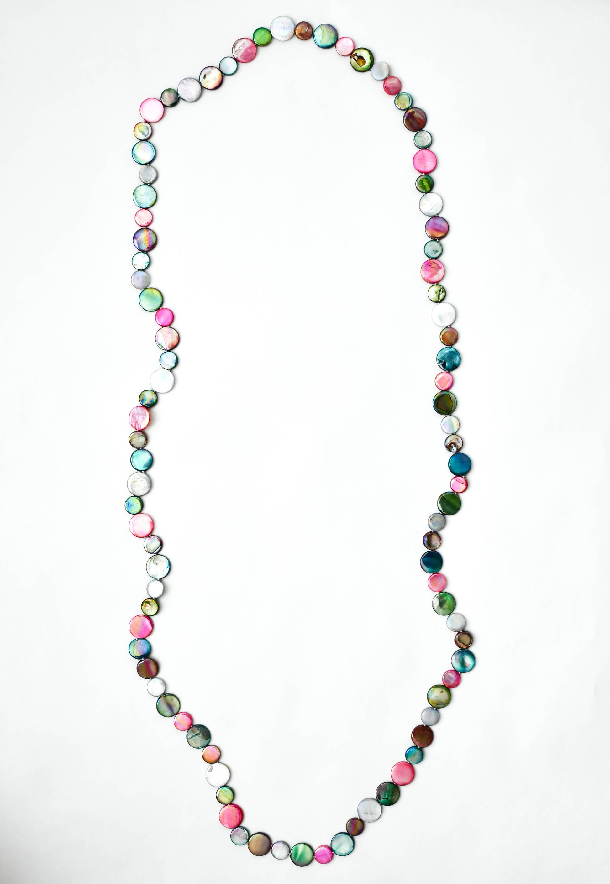 Sea Lily - 2051 - Berry/Teal/Light Gray Single Strand MOP Necklace
