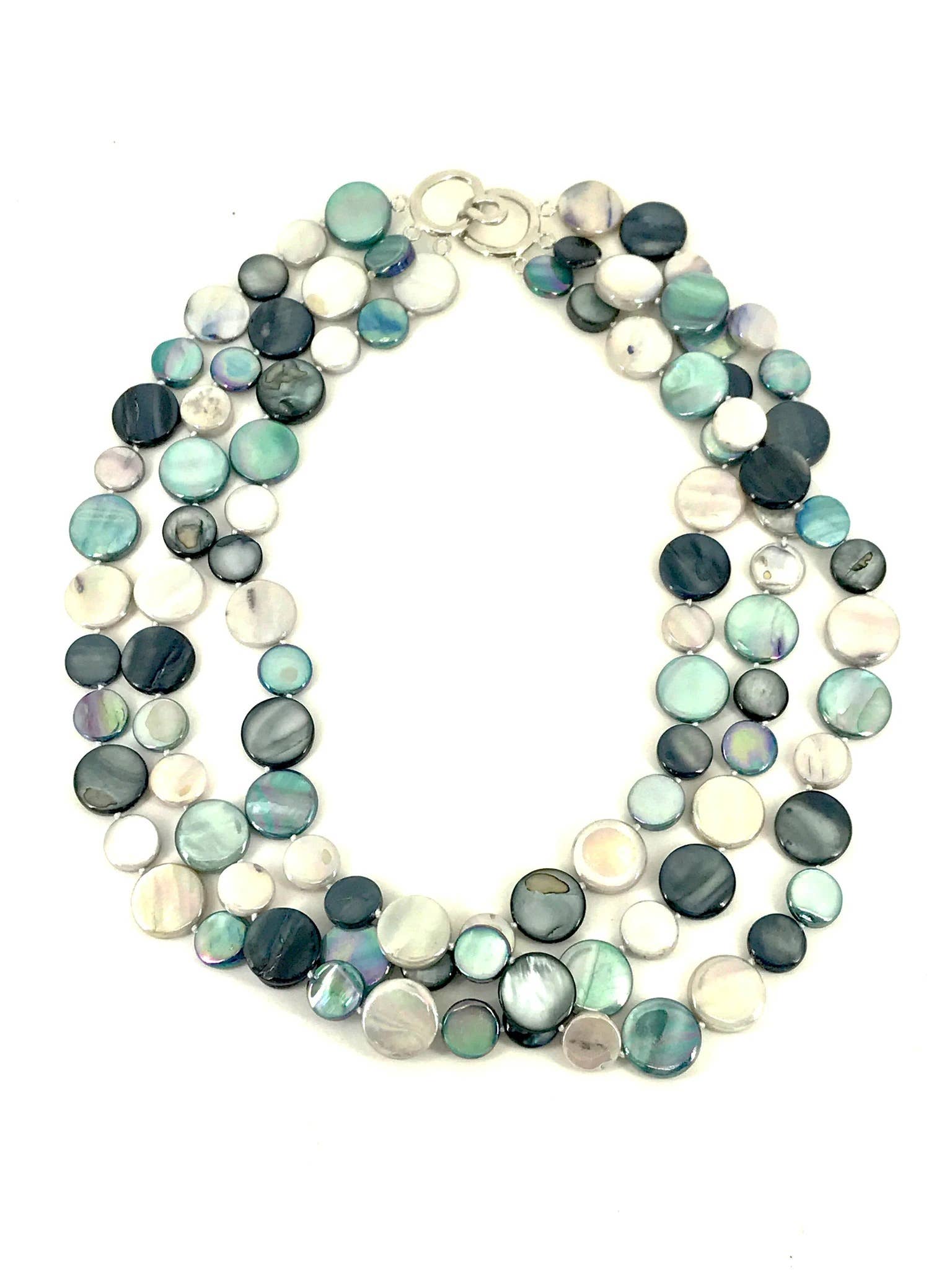 Sea Lily - 252016 - Turq, Gray, Black 3 Strand MOP Necklace