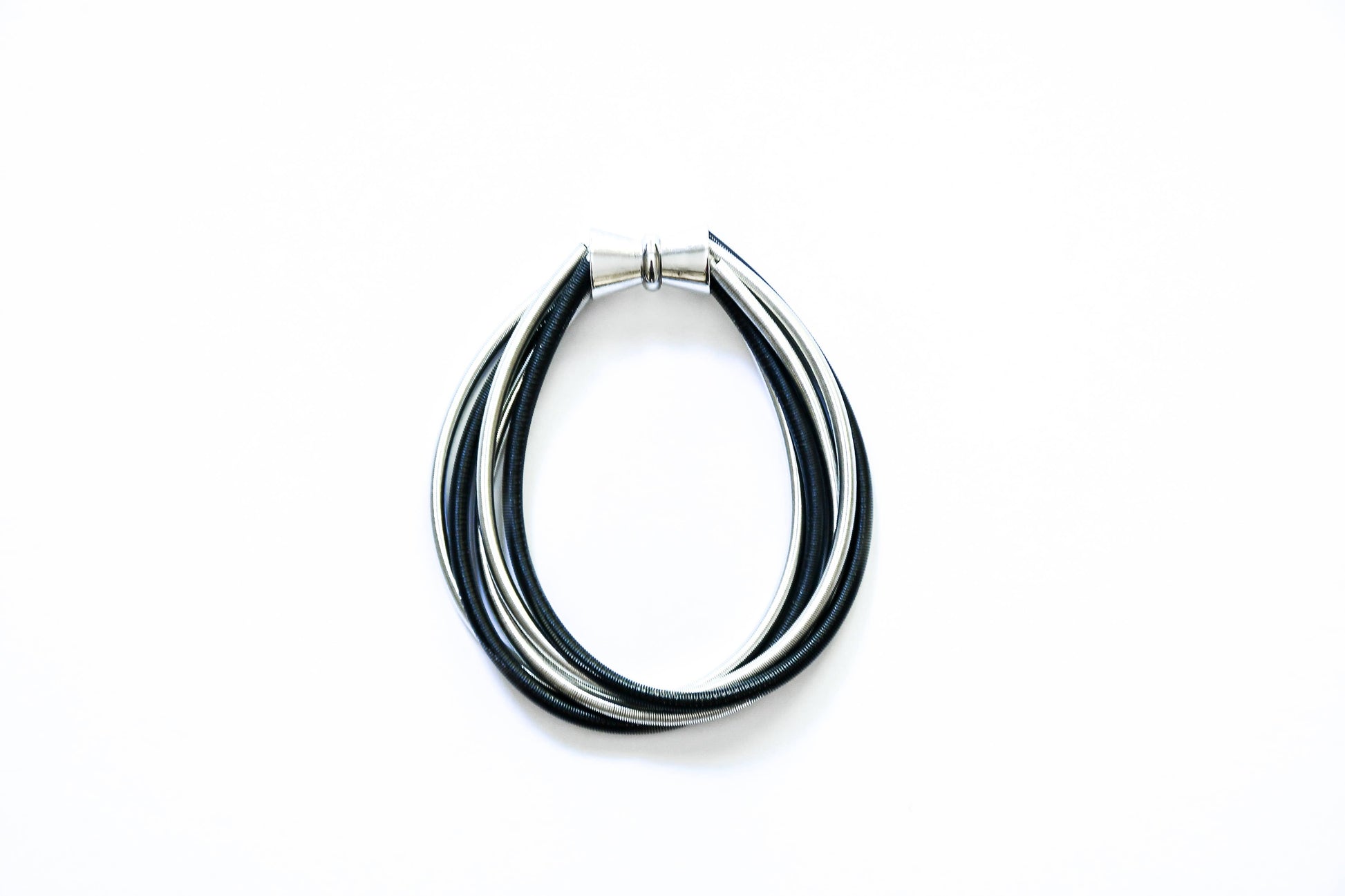 Silver And Black 5 Strand Wire Bracelet With Magnet. The perfect gift for any occasion: Birthday, graduation, christmas or mother’s day.