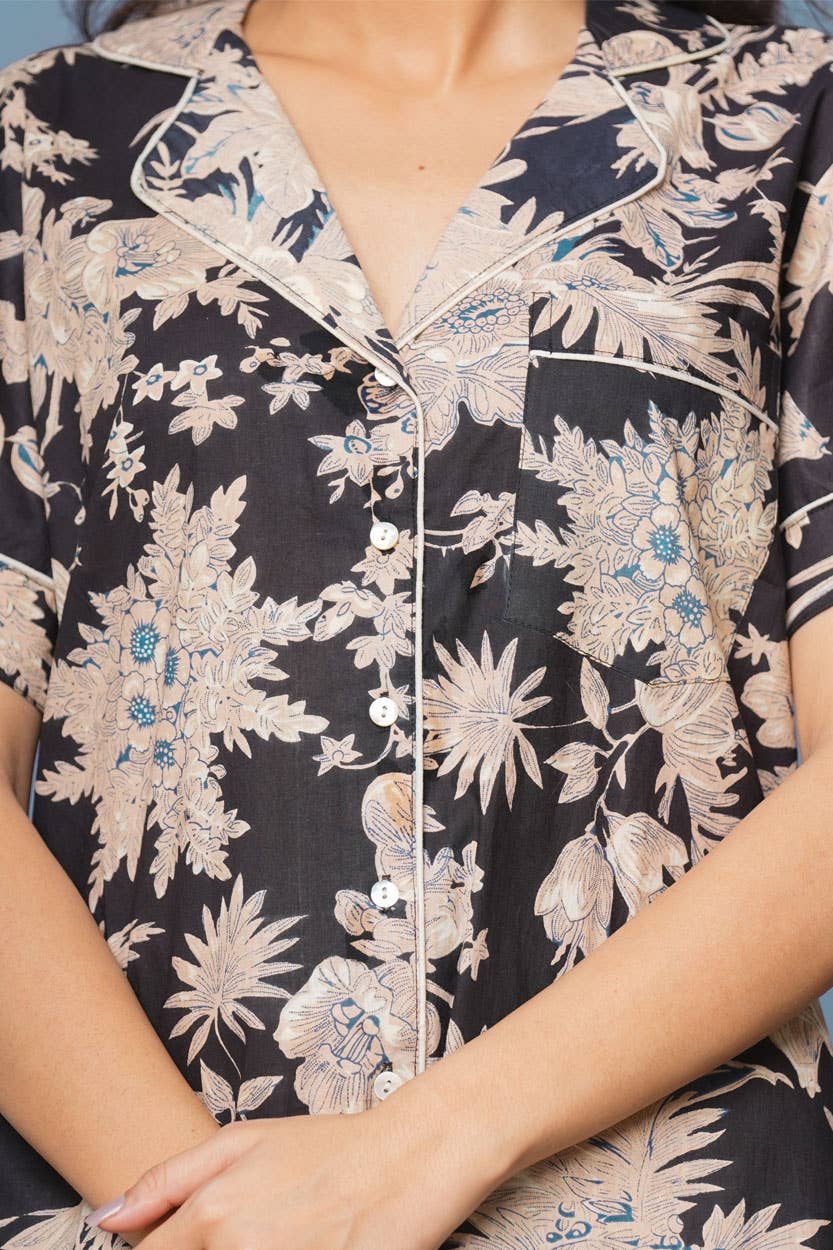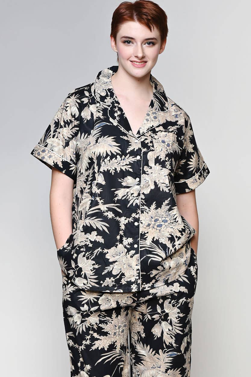 Our Shanti Pajamas are printed on soft 100% cotton material by artisans in Rajasthan, India. These fair trade pajamas are designed for comfort and functionality and come as a matching set of a short sleeve button down top and pants with pockets and an elasticated waistband with drawstring. Our nightwear collection is made with the high quality cotton material that India is famous for and is machine washable. Available in two sizes S/M and L/XL.