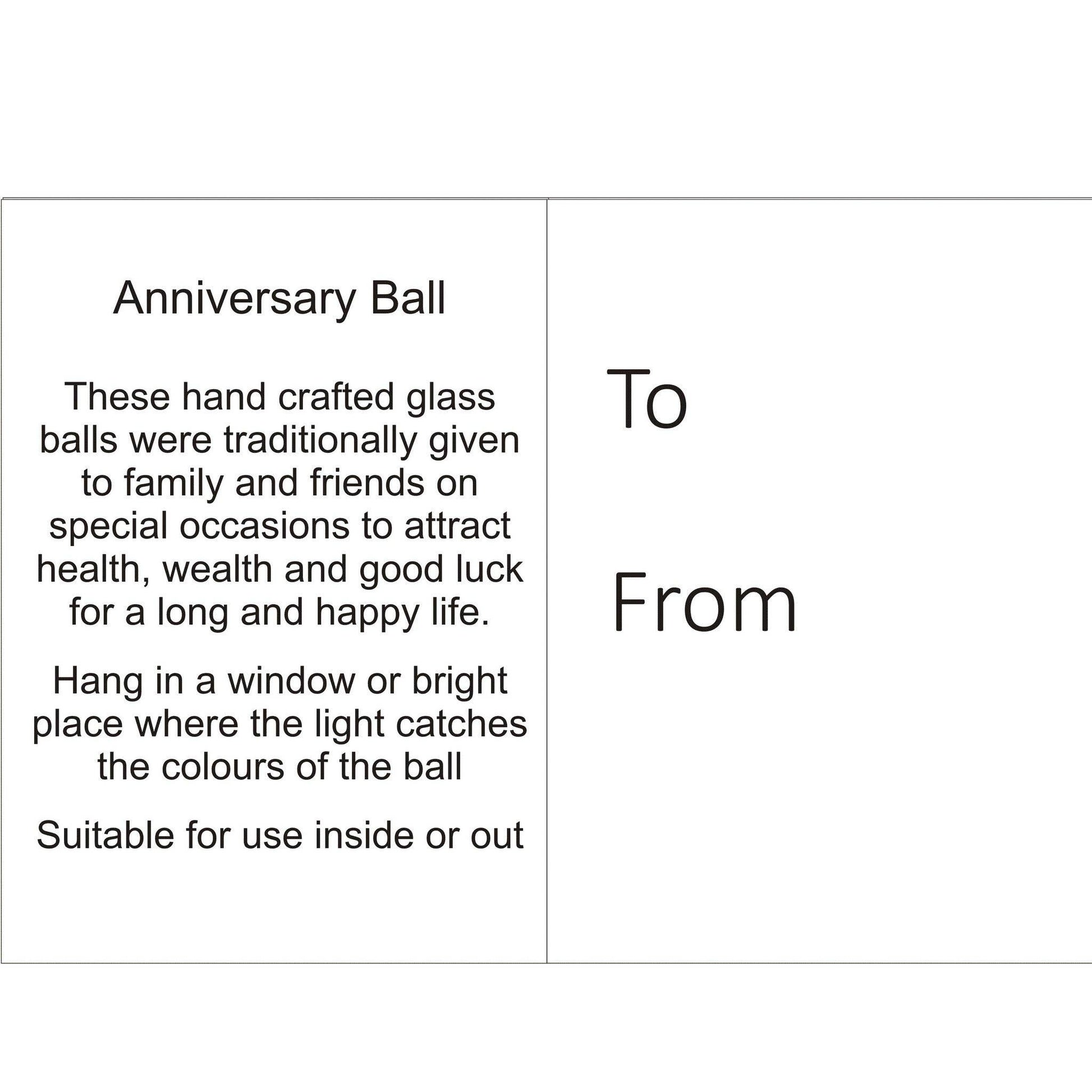 Beautiful glass friendship ball wedding anniversary gift from Sienna Glass. Mouth blown by craftsmen in eastern Europe making every one unique. The products are then finished with a stunning Sienna gift box for presentation, safety and ease of display.