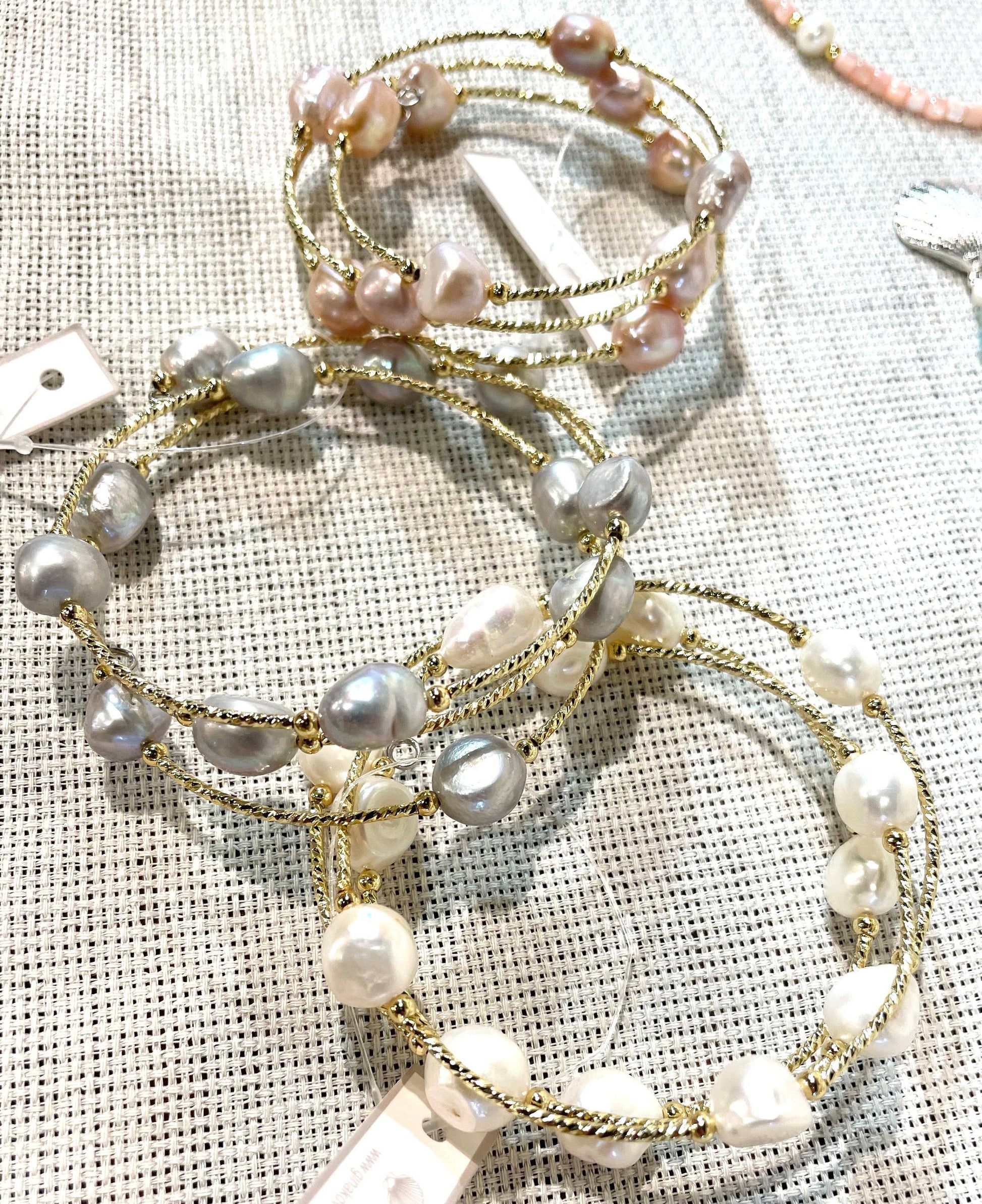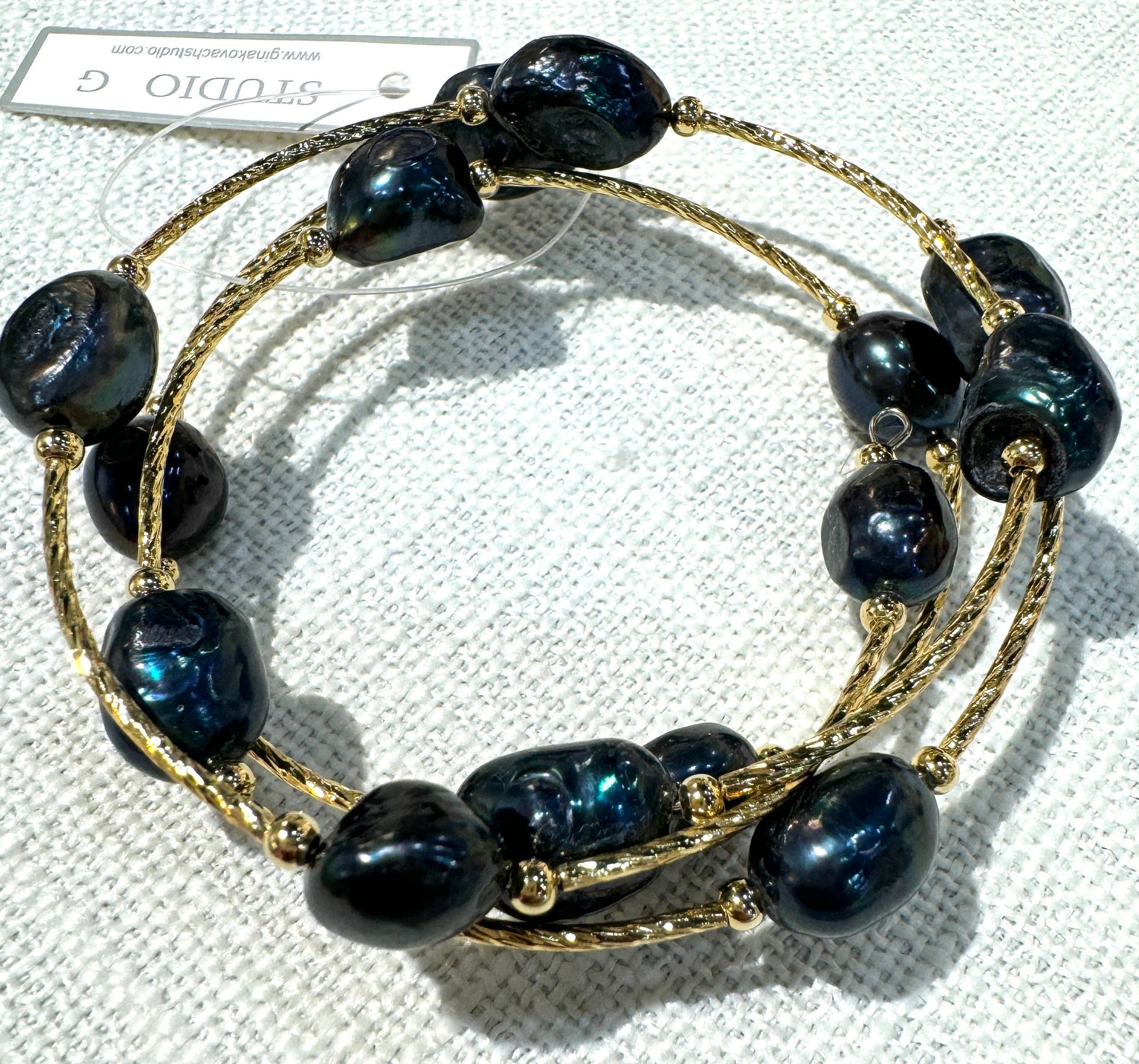 Studio G - #150 GD Gold Wrap Potato Pearl Bracelet: Grey Pearl