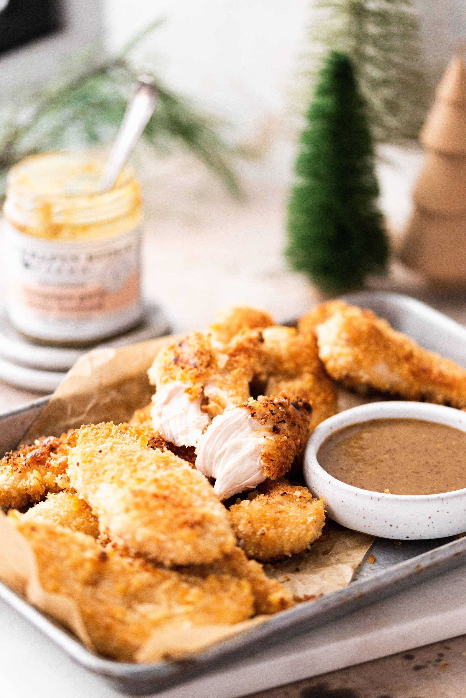 Cracker Crust Chicken Fingers with Champagne Garlic Honey Mustard