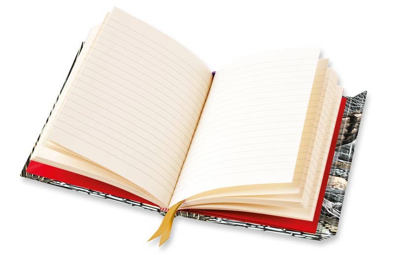 Beautiful and luxurious the journals combine high-quality production with magnificent art. The highly crafted covers are printed on foil paper, embossed then foil stamped, complemented by the luxury binding and rose red end-papers. Notebooks come with practical features too: a pocket at the back for scraps and receipts; two ribbon markers to help keep track of more than just a to-do list; robust ivory text paper, printed with lines; and when you need to collect other notes or scraps of paper the magnetic side flap keeps everything neat and tidy.
