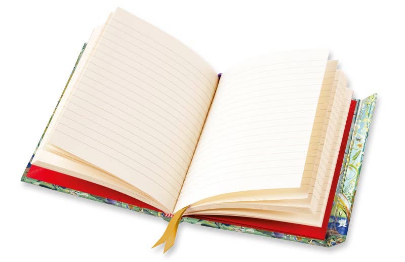 Beautiful and luxurious the journals combine high-quality production with magnificent art. The highly crafted covers are printed on foil paper, embossed then foil stamped, complemented by the luxury binding and rose red end-papers. Notebooks come with practical features too: a pocket at the back for scraps and receipts; two ribbon markers to help keep track of more than just a to-do list; robust ivory text paper, printed with lines; and when you need to collect other notes or scraps of paper the magnetic side flap keeps everything neat and tidy.
